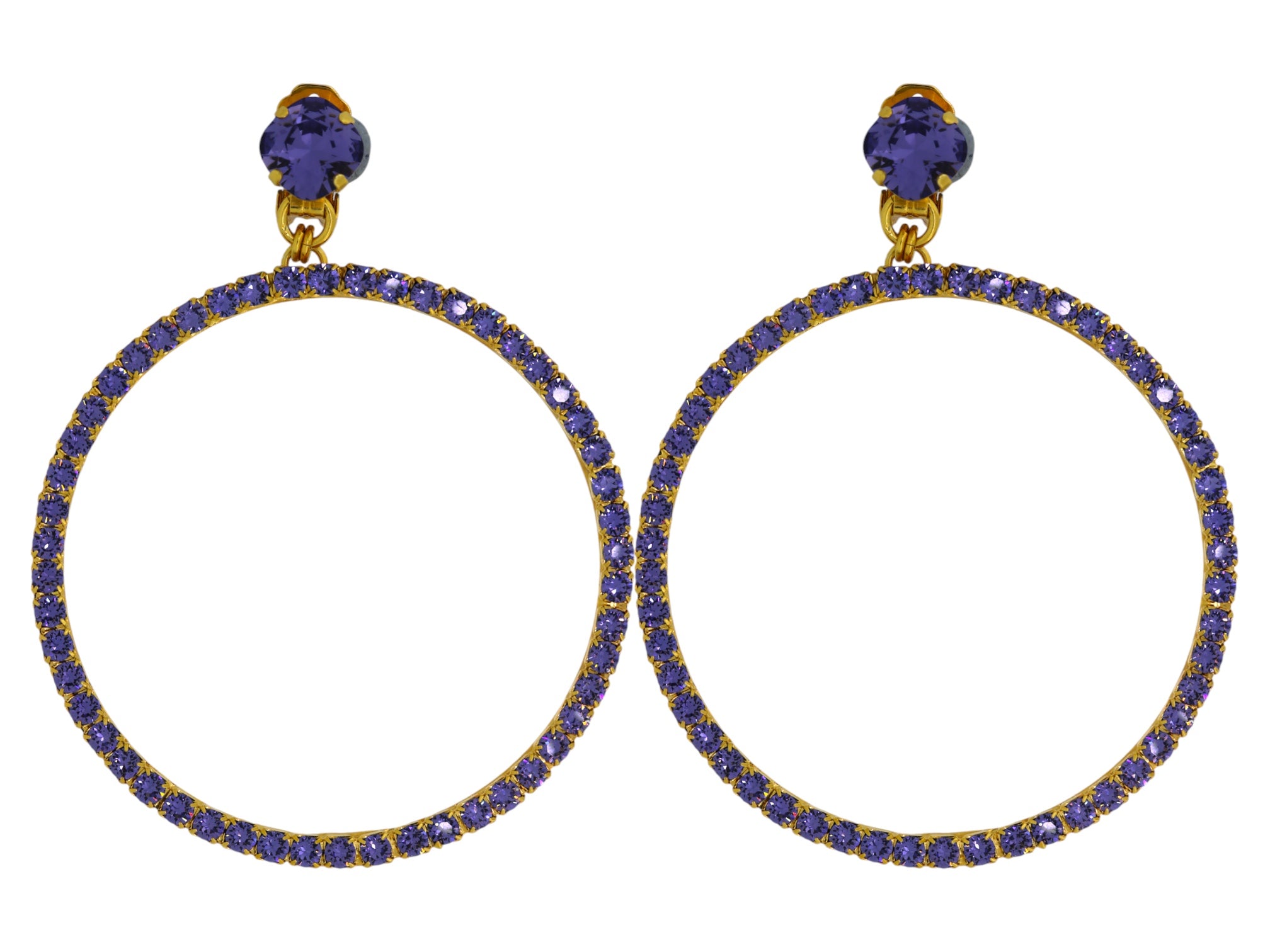 The Large Purple Hoop Earrings in Gold (Pierced)