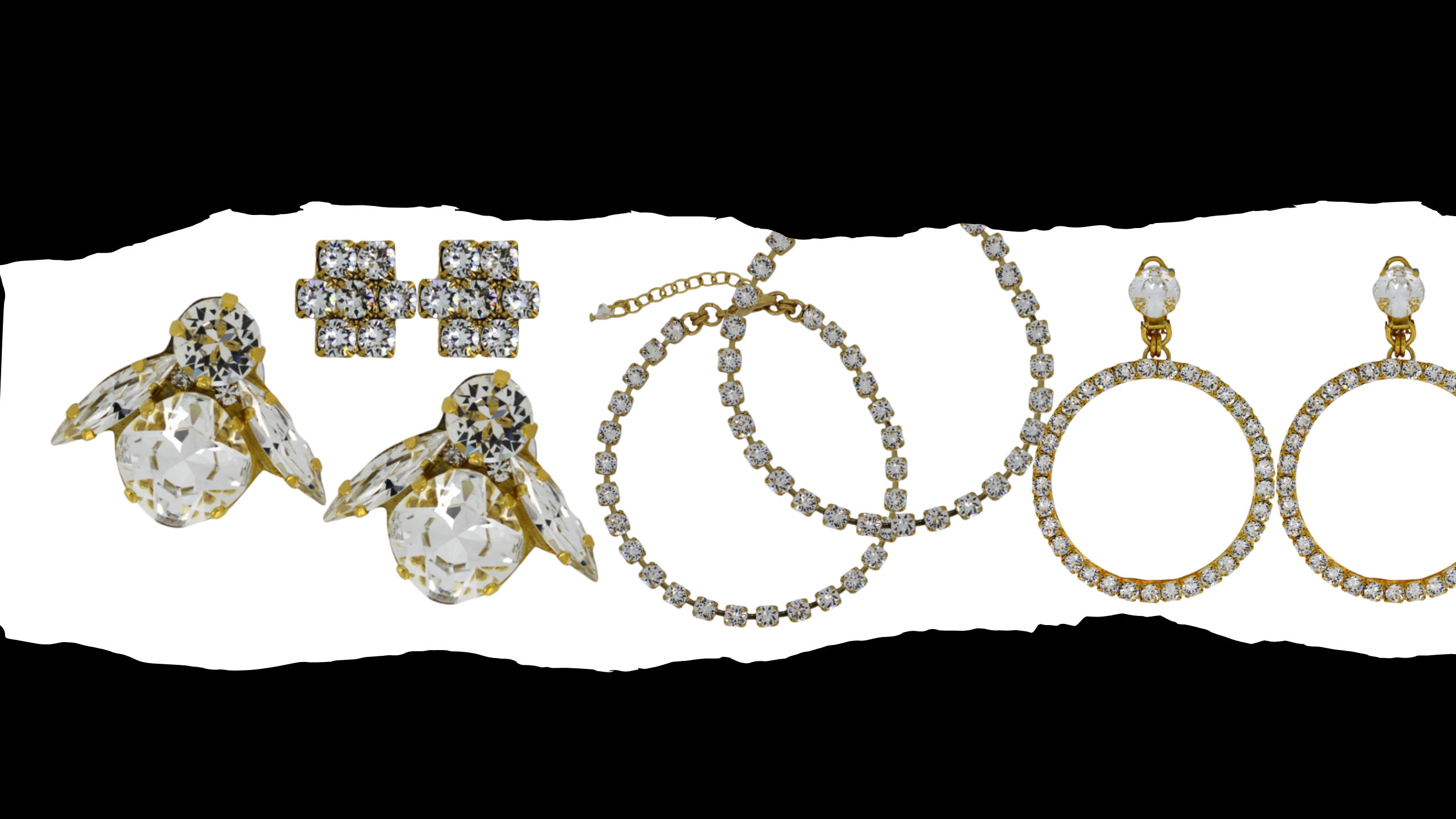 Our jewellery utilises 23k Gold, Platinum, and Sterling Silver plating over a nickel-free base. We use only ethically sourced materials and crystals and faux pearls of the highest quality.