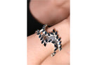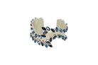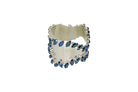 A sculptural cuff edged in stormy stormy blue crystals, finished in Sterling Silver plate.