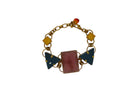 A geometric bracelet featuring large vintage stones in shades of dusky rose, teal and yellow. Set in 23k Gold Plating, this bracelet is the perfect way to add a touch of colour to any outfit.
