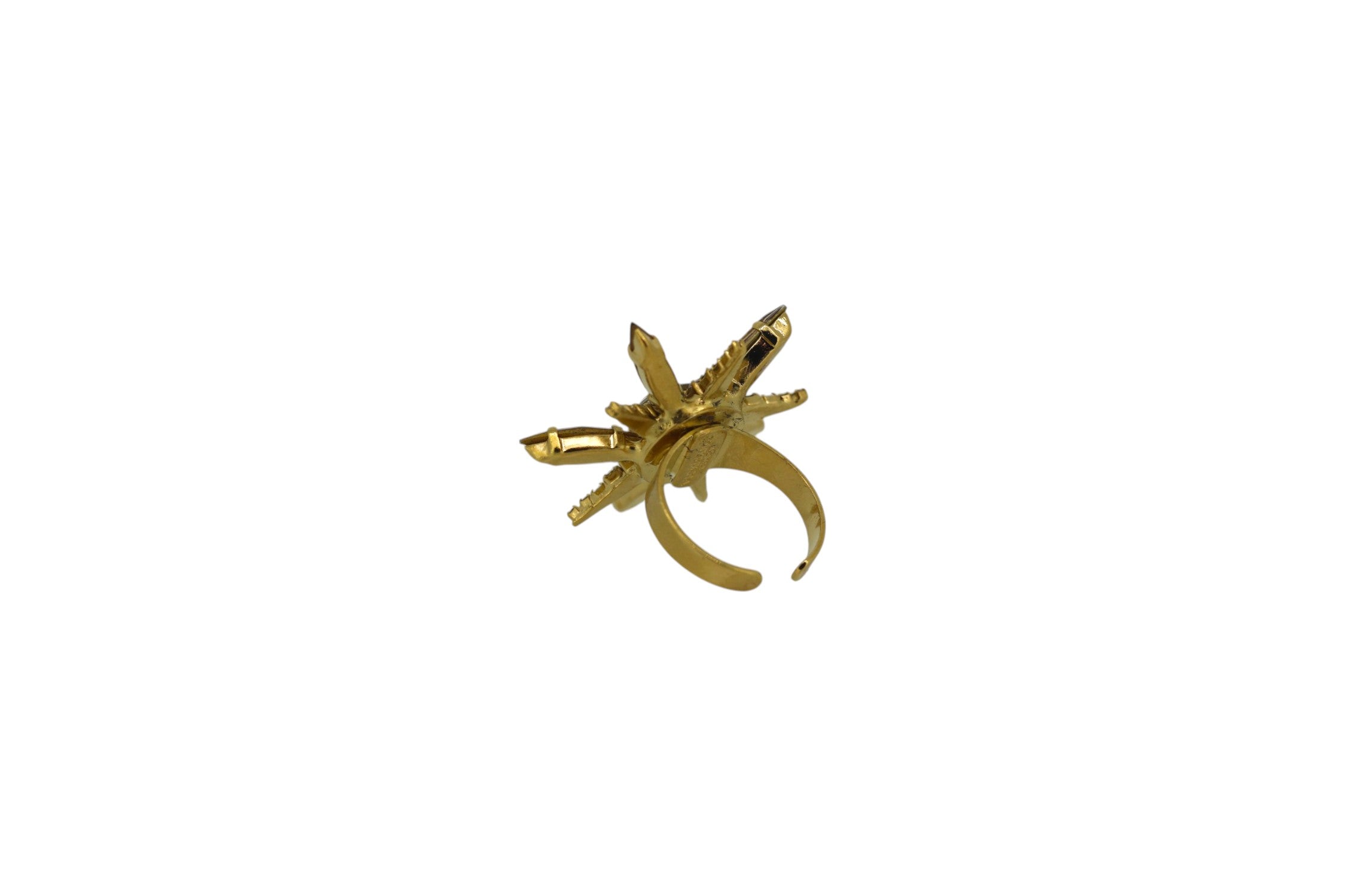 This exquisite ring captures the festive spirit with its radiant star motif, delicately crafted in 23k Gold plating. Champagne-toned Premium Austrian Crystals are meticulously arranged to form the shimmering star, their warm hues complementing the golden setting for a look of understated luxury.