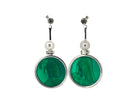 A pair of faux-carved emeralds, suspended in a deco setting from crystal brilliants and accented by a pearl. These stones feature Sāvant Singh and his lover Bani Thani, whose union ignited a new artistic style in 18th century India.
