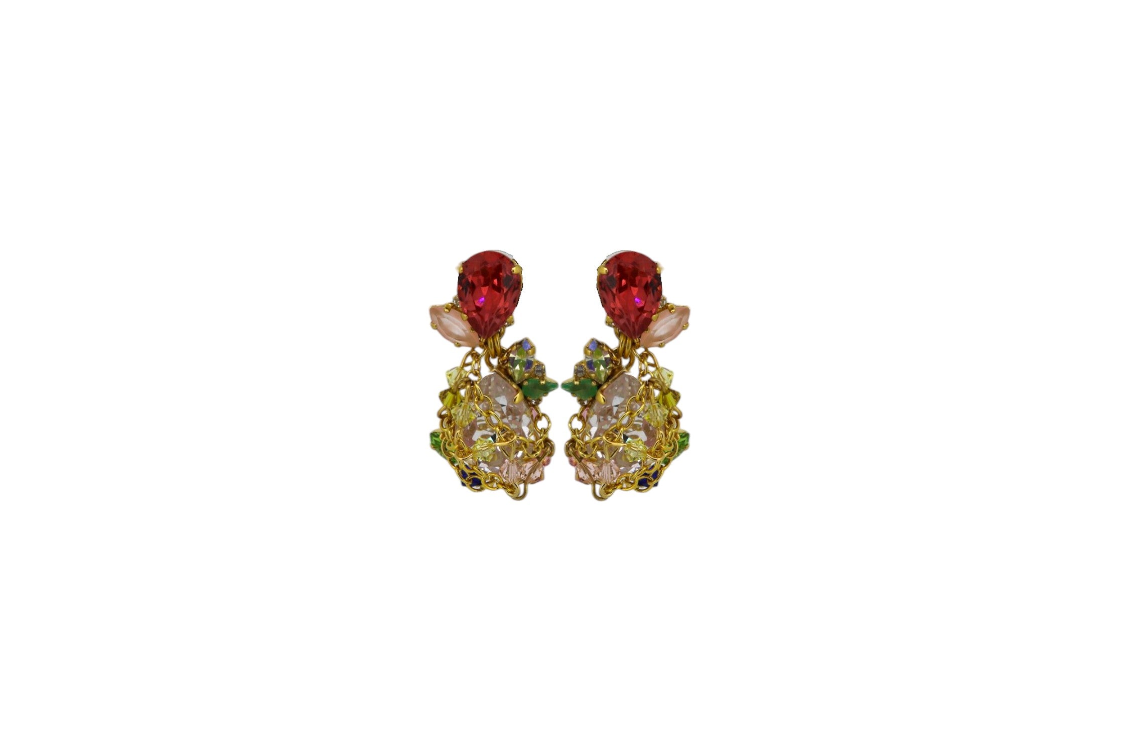 These exquisite pear-shaped drop earrings exude timeless elegance, featuring clear Premium Austrian Crystals that shimmer with exceptional brilliance. Each crystal is delicately accented by subtle touches of colour, adding depth and vibrancy to the design. Wrapped in a fine 23k Gold-plated chain, the setting enhances their luminous sparkle while creating a beautifully intricate, textured finish.
