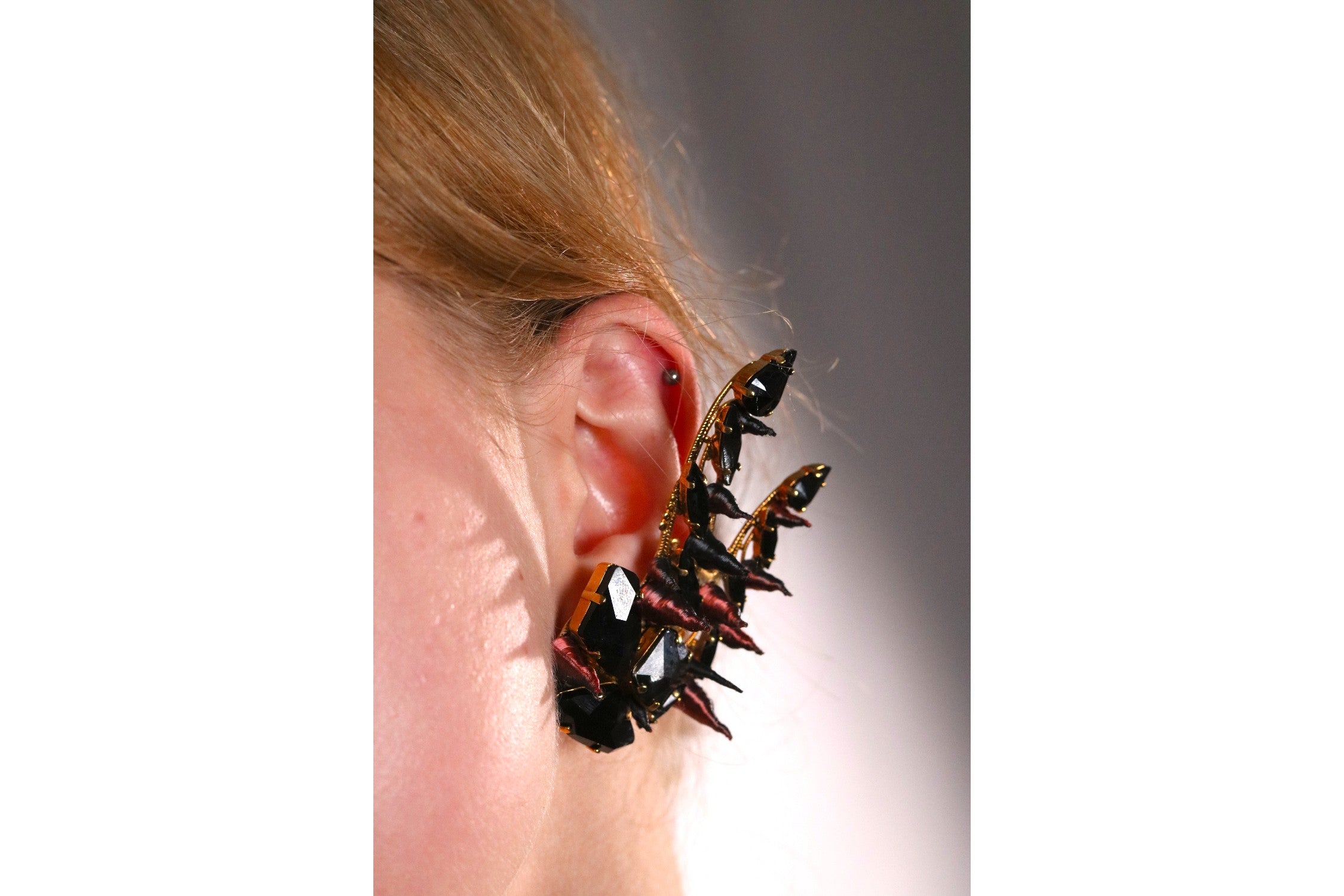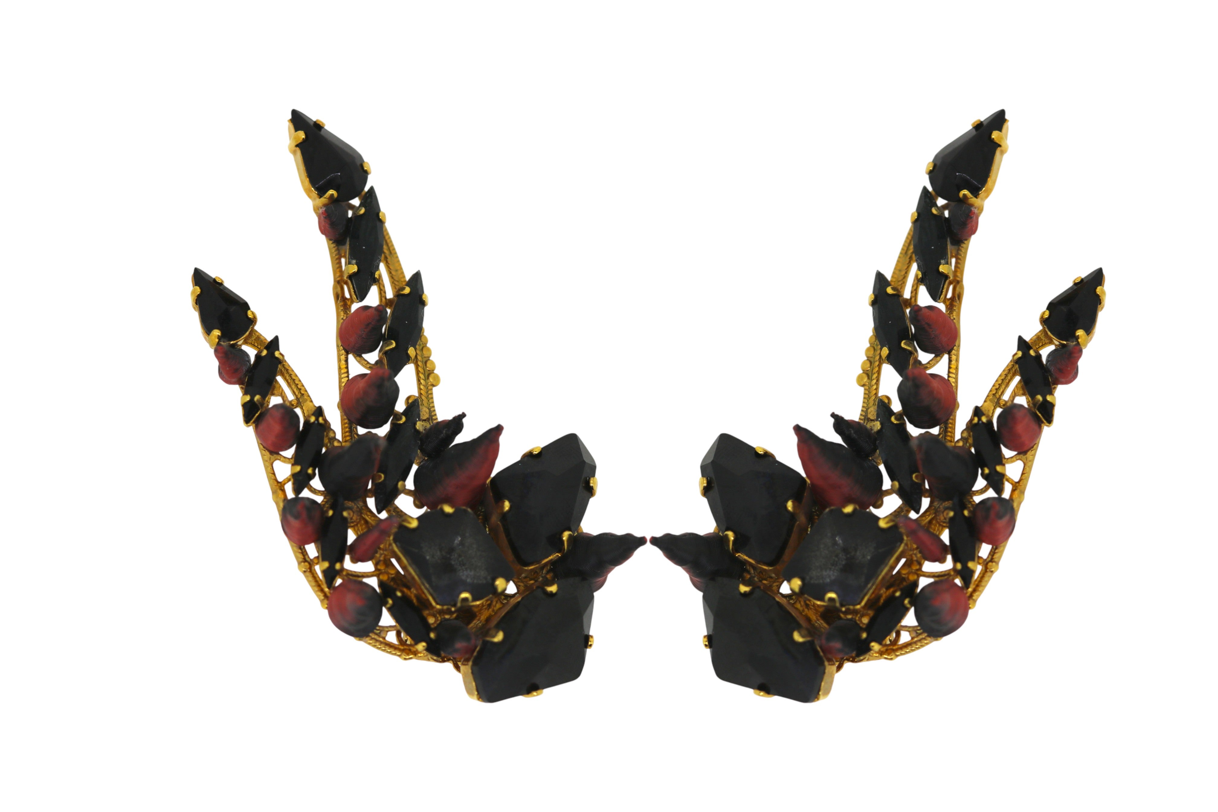Designed in collaboration with Karina Bond, these filigree clip earrings feature Premium Austrian Crystals and earthy toned spikes that gesture upwards.