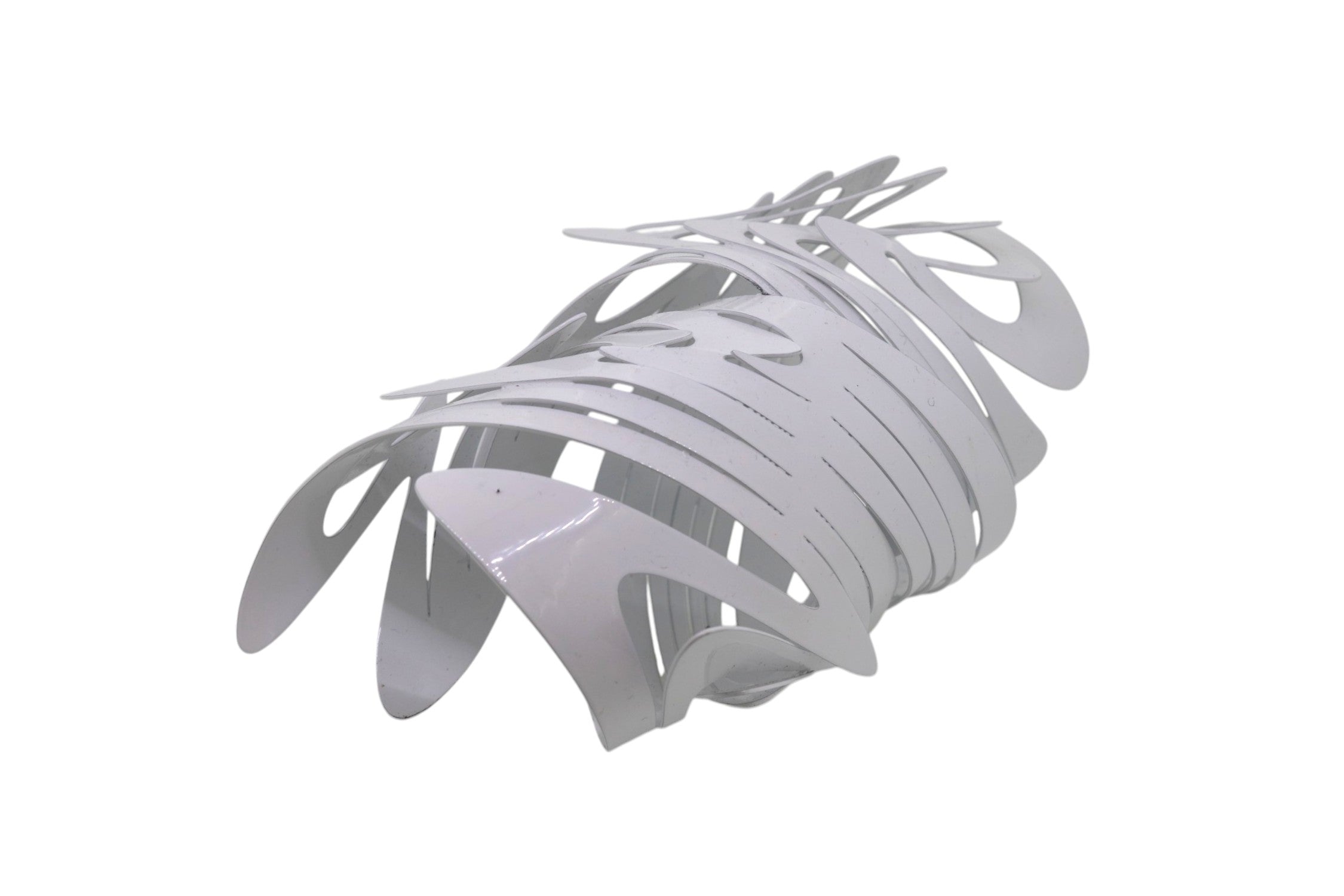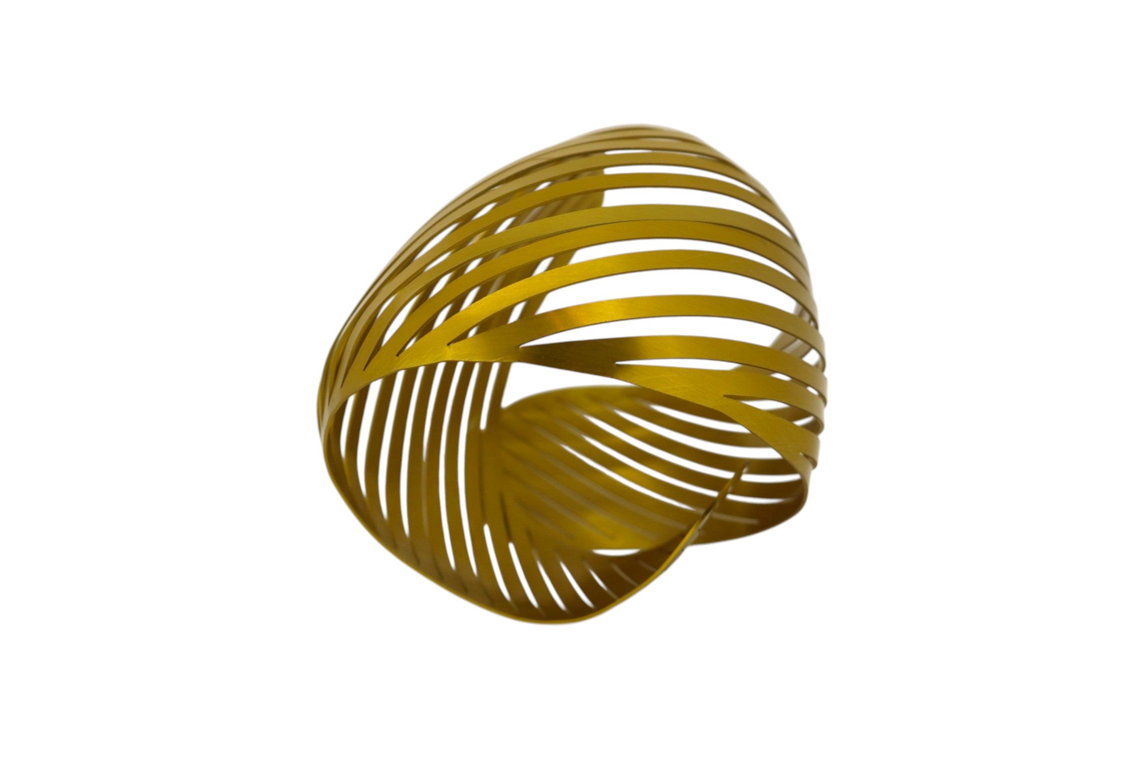 Ellina Pollitt combines her love for natural forms and design, first sparked during her studies in Forestation and Park Arrangements. A graduate of Staffordshire University and Birmingham City University’s School of Jewellery, she specializes in crafting bold, intricate jewellery designs. Winner of the 2021 Goldsmiths and Design Award, her globally sold work transforms flat metals into creative patterns and forms.