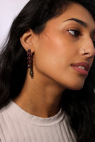 These enchanting crystal earrings feature two crystal studded drops in complementary purple tones, creating a stunning gradient effect that catches the light beautifully. Each drop is delicately paired with antiqued silver-plated insects, adding a touch of nature-inspired whimsy and vintage charm.