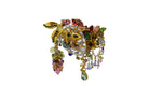 This striking crystal brooch is a captivating blend of nature and fantasy, featuring a meticulously crafted 23k Gold-plated spider nestled amongst a bed of floral blooms. The intricate petals shimmer with Premium Austrian Crystals, while dangling clusters add movement and depth, catching the light with every turn.