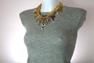 A grand necklace featuring a cascade of crosses in various sizes and finishes, terminating in a pendant of pearl and crystal. This necklace features gold-plated chain intricately held together with silver-plated rings, delicate crystals catch the light on this piece's multitude of charms.