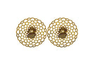 These bold clip earrings feature discs of honeycomb lattice plated in 23k Gold and finished with Premium Austrian Crystal at the centre.