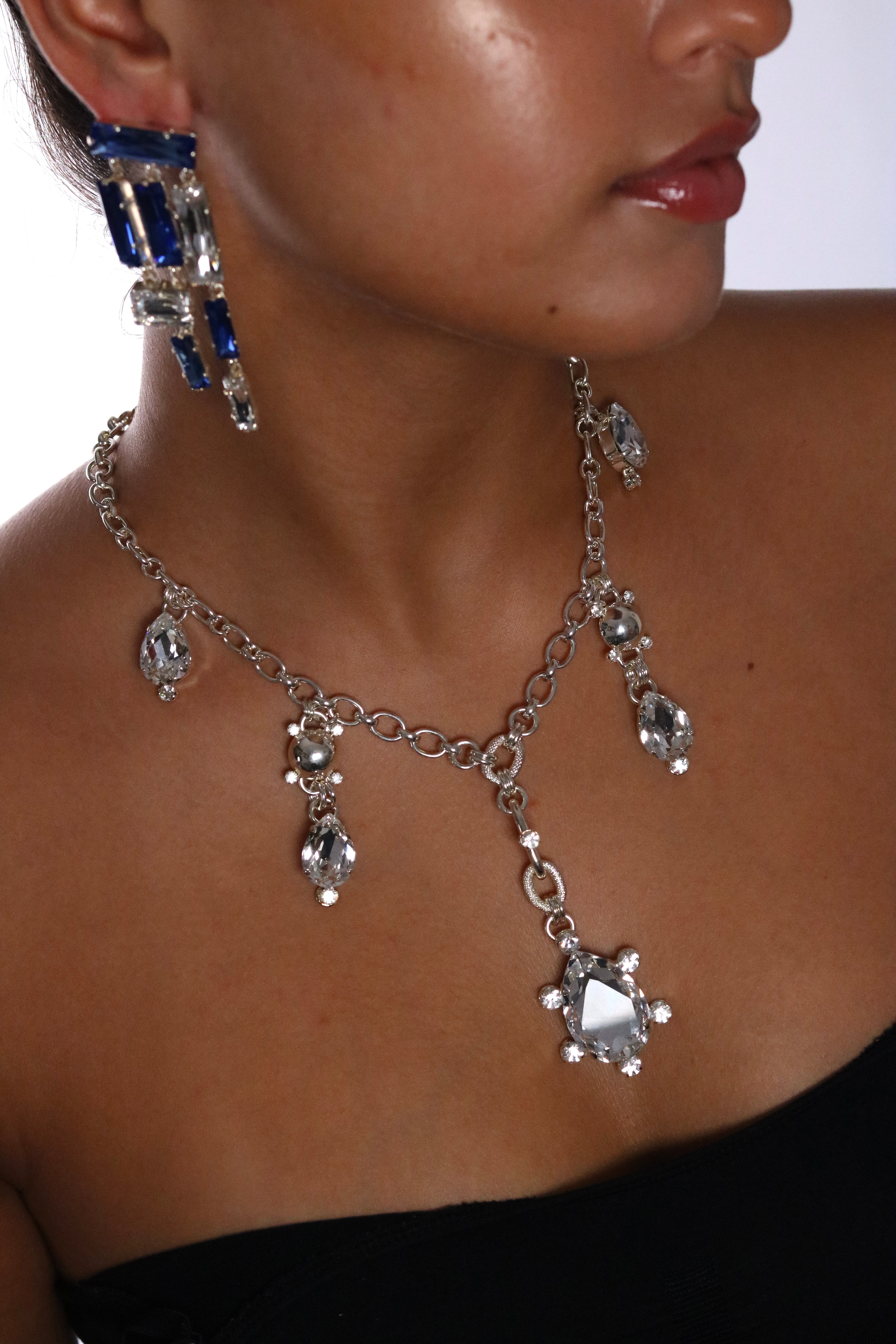 The Diamond Necklace is crafted with premium Austrian crystals and Silver plating, perfect for adding elements of glamour and sparkle to the every day.