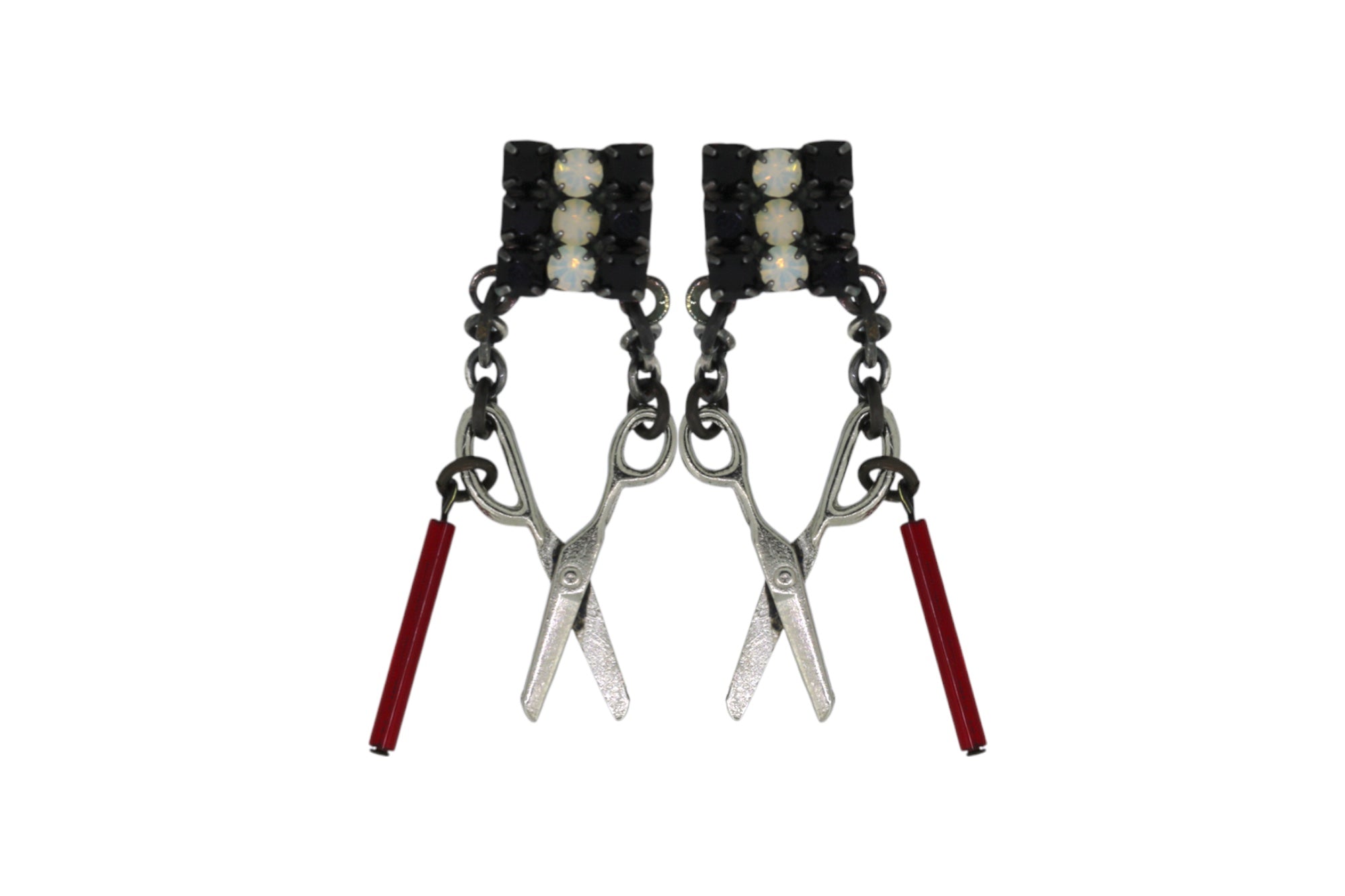These one-of-a-kind Dripping Scissor Earrings are plated in Oxidised Sterling Silver and contain vintage materials and premium Austrian crystals sourced directly from the vaults. Handcrafted in our Kensington workshop, these earrings bound to add some sparkle and edge to your party outfit.