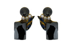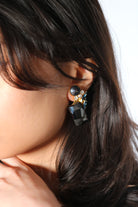 Featuring all the darkness of a night sky, the Midnight earrings feature blackened studs set above a modern, rectangular Swarovski crystal and accented in shades of grey and midnight blue.