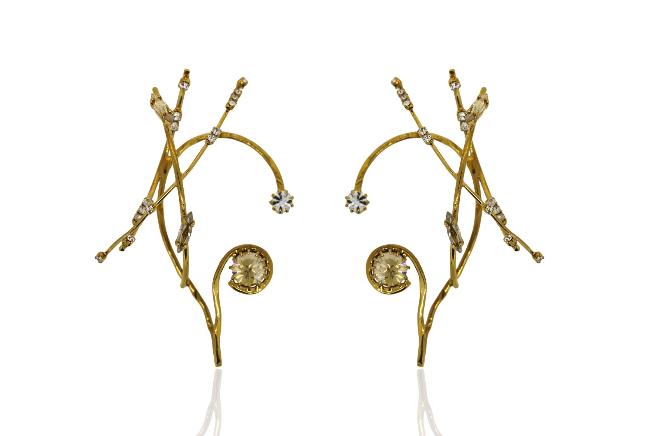Designed in collaboration with Stephen Jones, The Quasar Ear Cuffs are crafted with premium Austrian crystals and 23k Gold plating. Perfect for when an ordinary pair of earrings just won't do!
