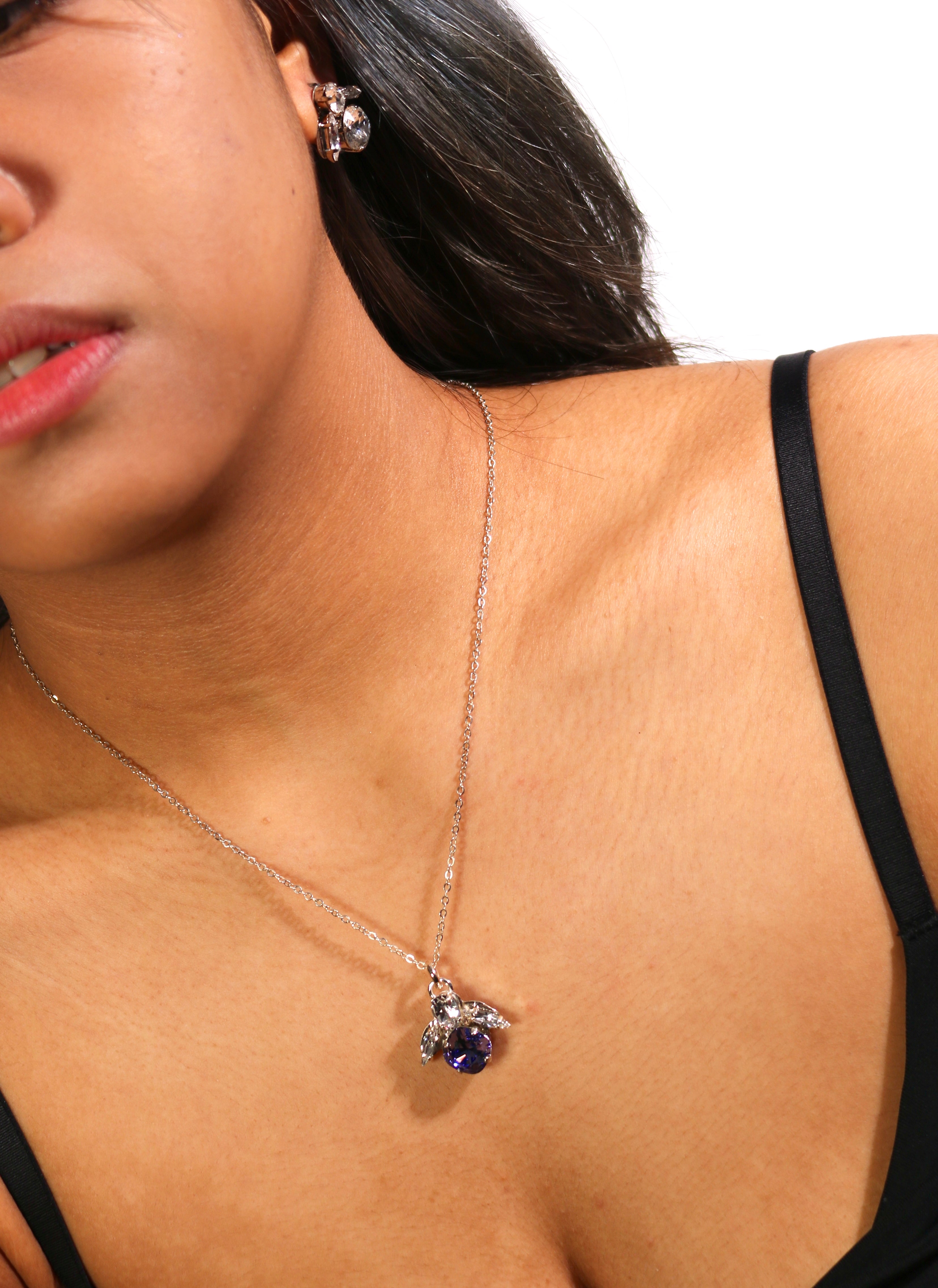 Featuring a dazzling cushion-cut crystal in luxurious Platinum plating, this necklace is handcrafted in our Kensington workshop. Perfect for day or night, the Bee Necklace is a staple in every wardrobe.