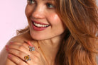 Featuring a dazzling cushion-cut crystal in luxurious 23k Gold plating, this ring is handcrafted in our Kensington workshop. Perfect for day or night, the Bee Ring is a staple in every wardrobe.