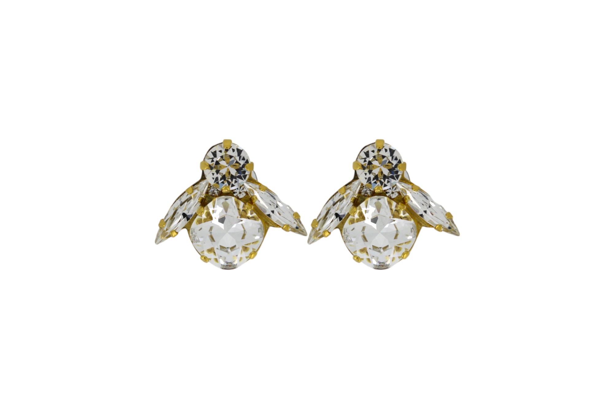 Featuring dazzling cushion-cut crystals in luxurious Gold plating, these earrings are handcrafted in our Kensington workshop. Perfect for day or night, the Big Bees are a staple in every wardrobe.
