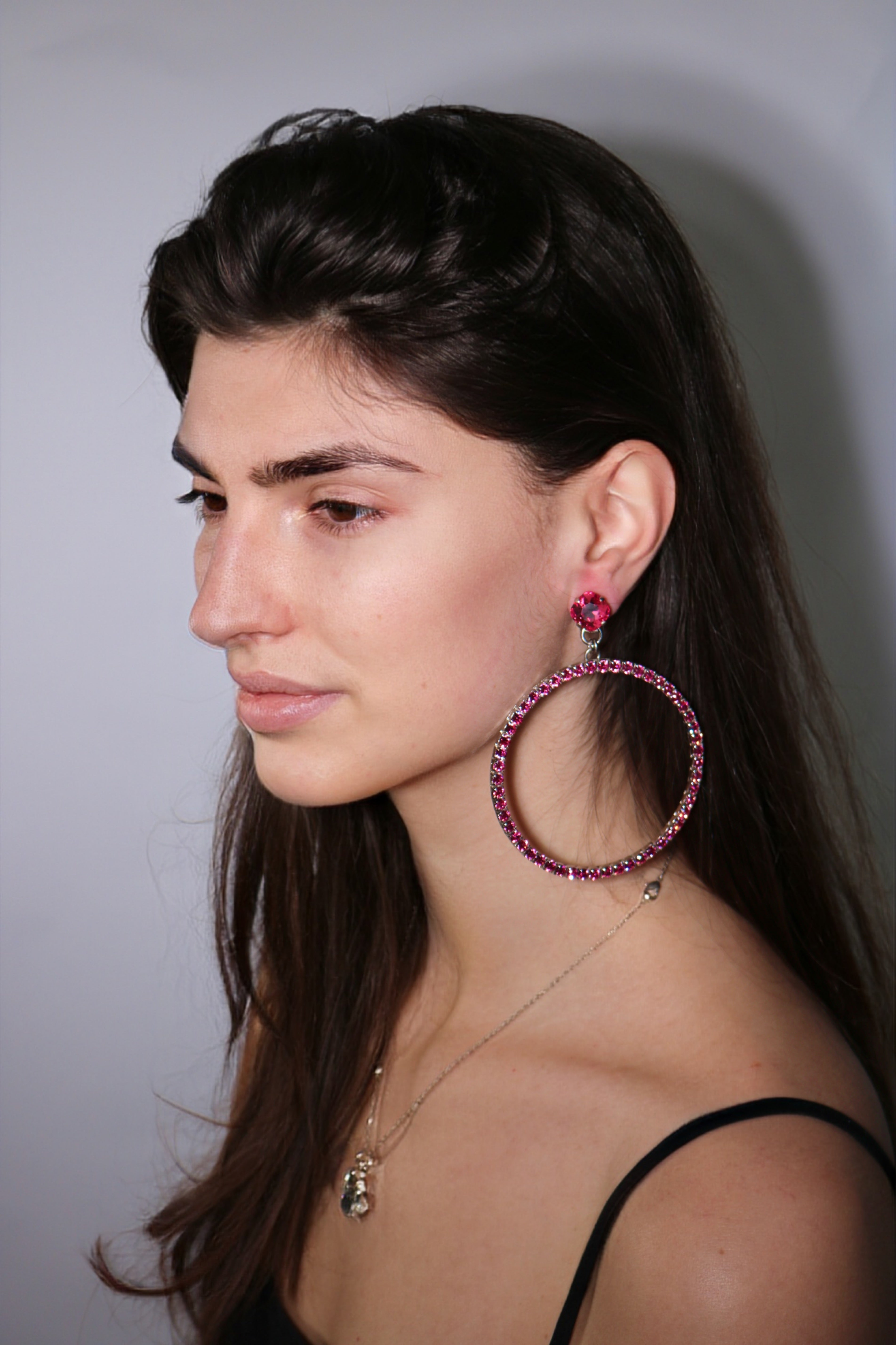 A bold and vibrant homage to the glamour and energy of Studio 54. Available in eight striking colours, these hoops are designed to make a statement. Whether you’re looking for a subtle accent or a standout piece, the VICKISARGE Hoop offers a playful nod to disco-era glamour with a modern twist, perfect for elevating any outfit.