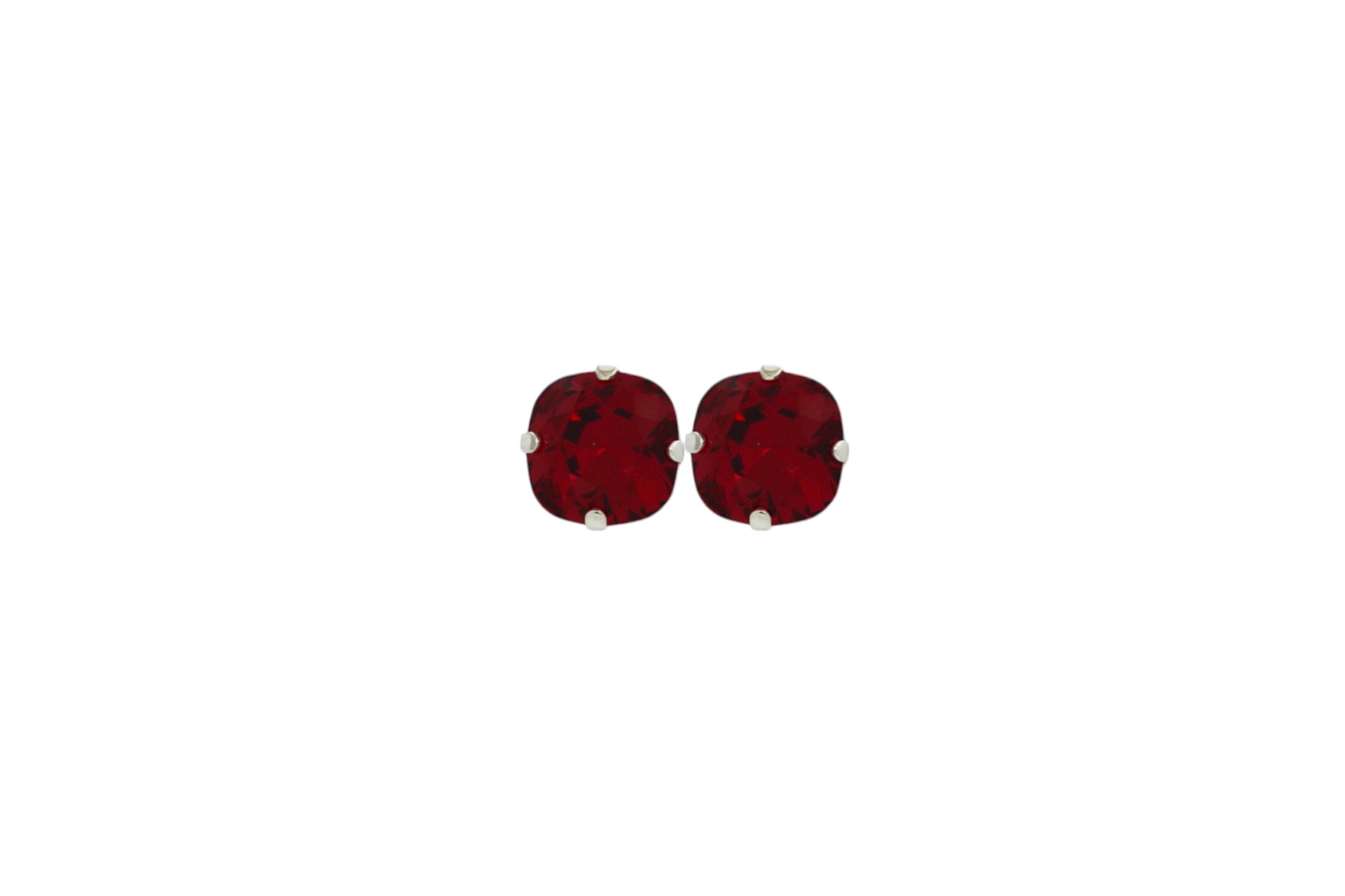 A shimmering cushion-cut crystal set in luxurious Platinum plating, these studs are handcrafted in our Kensington workshop.