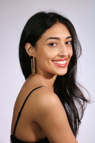 Featuring dazzling cushion-cut Premium Austrian Crystals dripping with shimmering tails and 23k Gold plating, these earrings are handcrafted in our Kensington workshop.