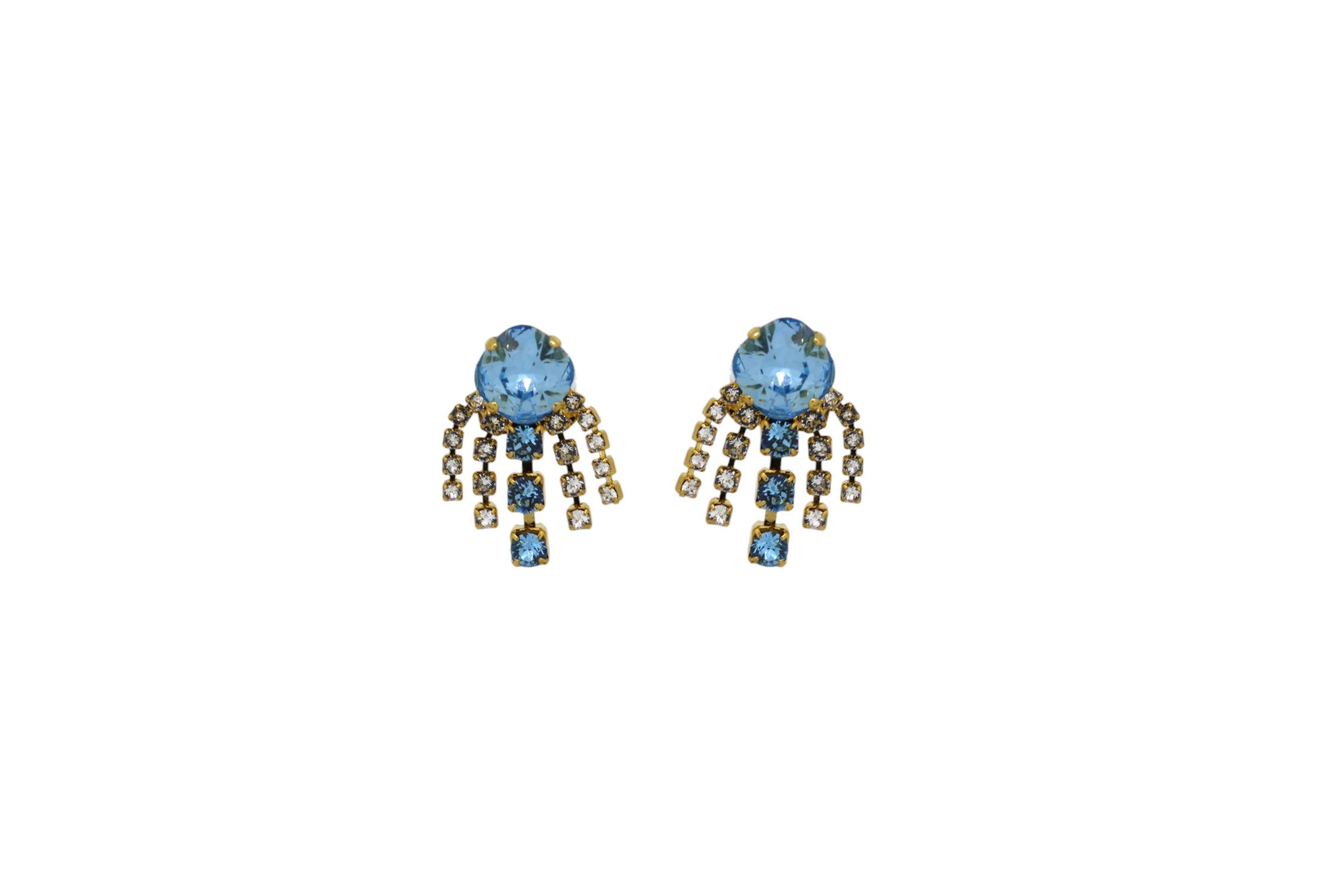 Featuring dazzling cushion-cut crystals dripping with shimmering tails and 23k Gold plating, these earrings are handcrafted in our Kensington workshop. The smaller sibling of the Shooting Star, these earrings offer a subtler but no less dazzling display.