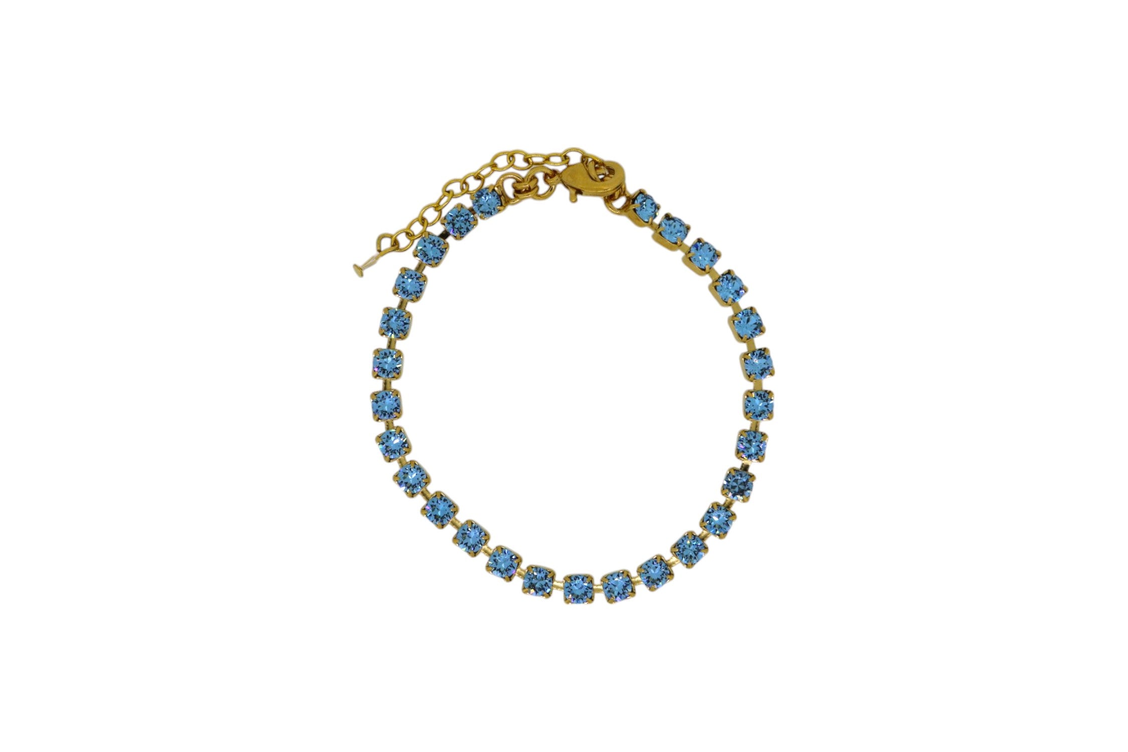 The Tennis Bracelet features 27 sparkling crystals set in a continuous, elegant line, offering timeless sophistication. The 23k Gold plated finish enhances durability and brilliance, while the flexible design ensures a comfortable fit.