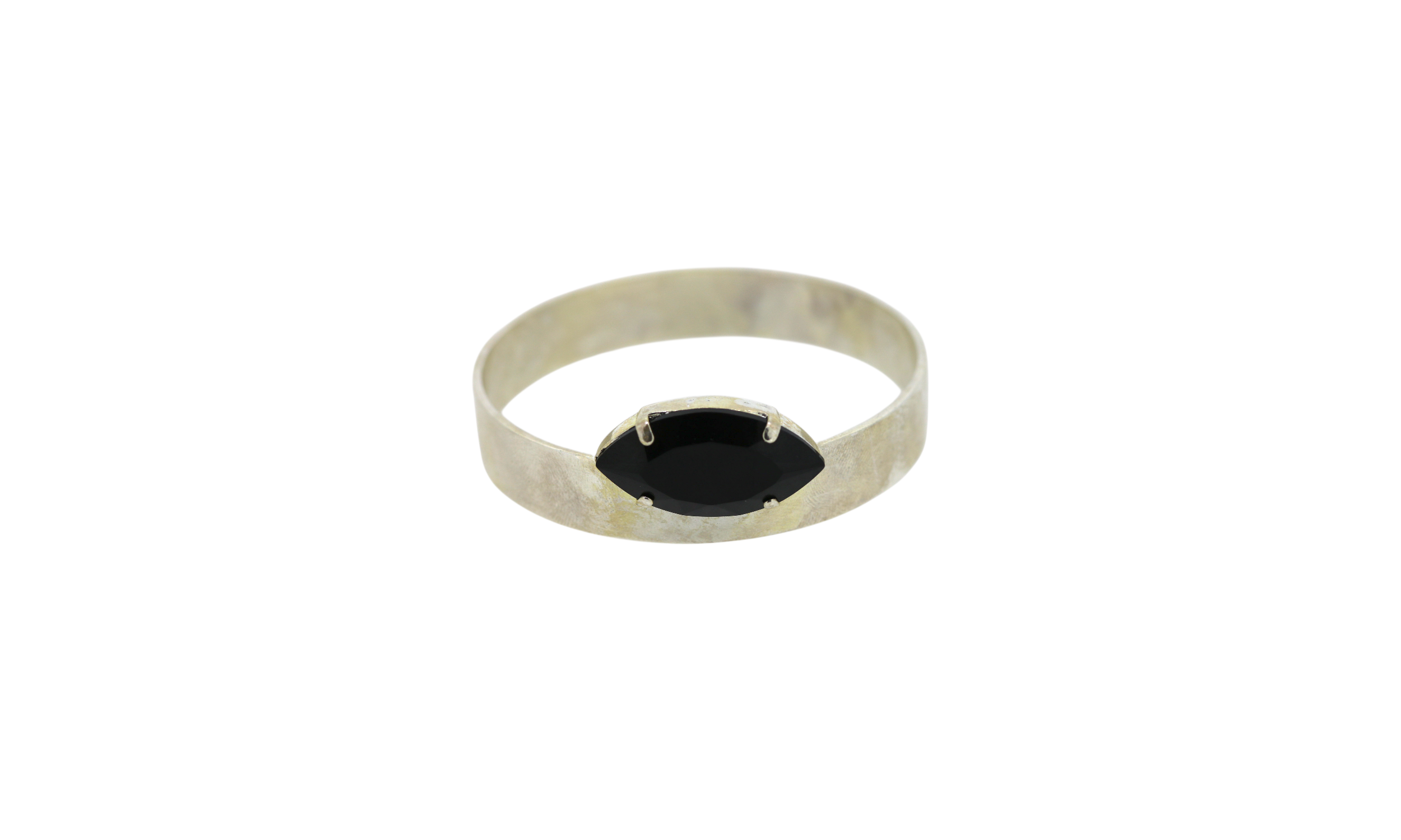 This sleek silver cuff features a bold marquise-cut black premium Austrian crystal centerpiece, striking the perfect balance between minimalist design and dramatic elegance.