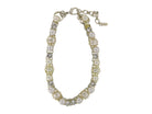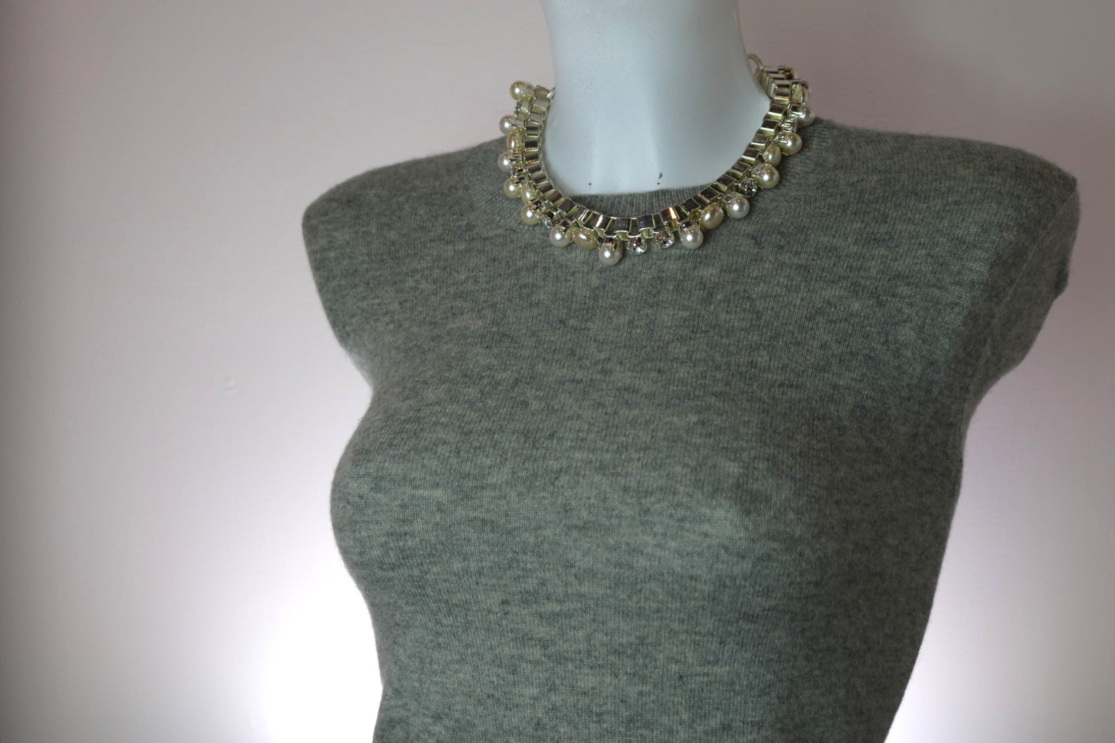 The Silver Ruff Collar is a striking statement necklace. It features a sculptural design resembling a ruff collar, finished with silver plating and faux pearls. Although designed to sit around the neck like a collar, the piece can also be worn flat against the skin.