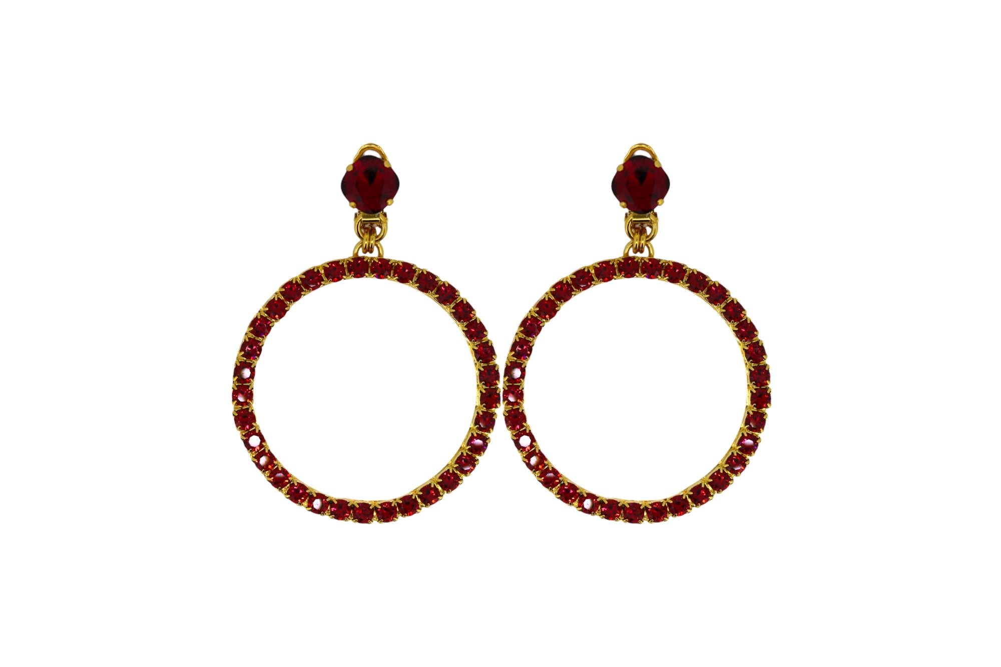 Estos aros están elaborados a mano en nuestro taller de Kensington y están engastados con 33 cristales austriacos de primera calidad en un lujoso baño de oro de 23 quilates. Son ideales para esos momentos que requieren un poco de dramatismo adicional y seguro que llamarán la atención. A pesar de los cristales, estos aros son livianos y cómodos para un uso prolongado.