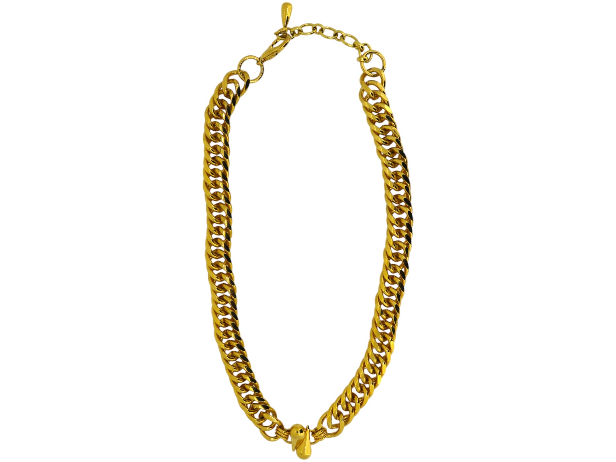 Dos gotas opuestas engastadas en oro de 23 k se encuentran en la parte delantera de este collar de cadena clásico. Ideal para todos los días, solo o como parte de una combinación.