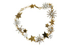 Este collar presenta una cautivadora disposición de patrones de estrellas elaborados en una combinación de tonos dorados y plateados, lo que crea un diseño dinámico y versátil. Cada estrella está adornada con cristales brillantes, que le agregan brillo y un toque celestial a la pieza.
