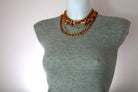 Con su rica paleta de ámbar, rojos profundos y acentos dorados, el collar evoca la belleza de las hojas que caen, combinando la inspiración natural con la sofisticación atemporal.