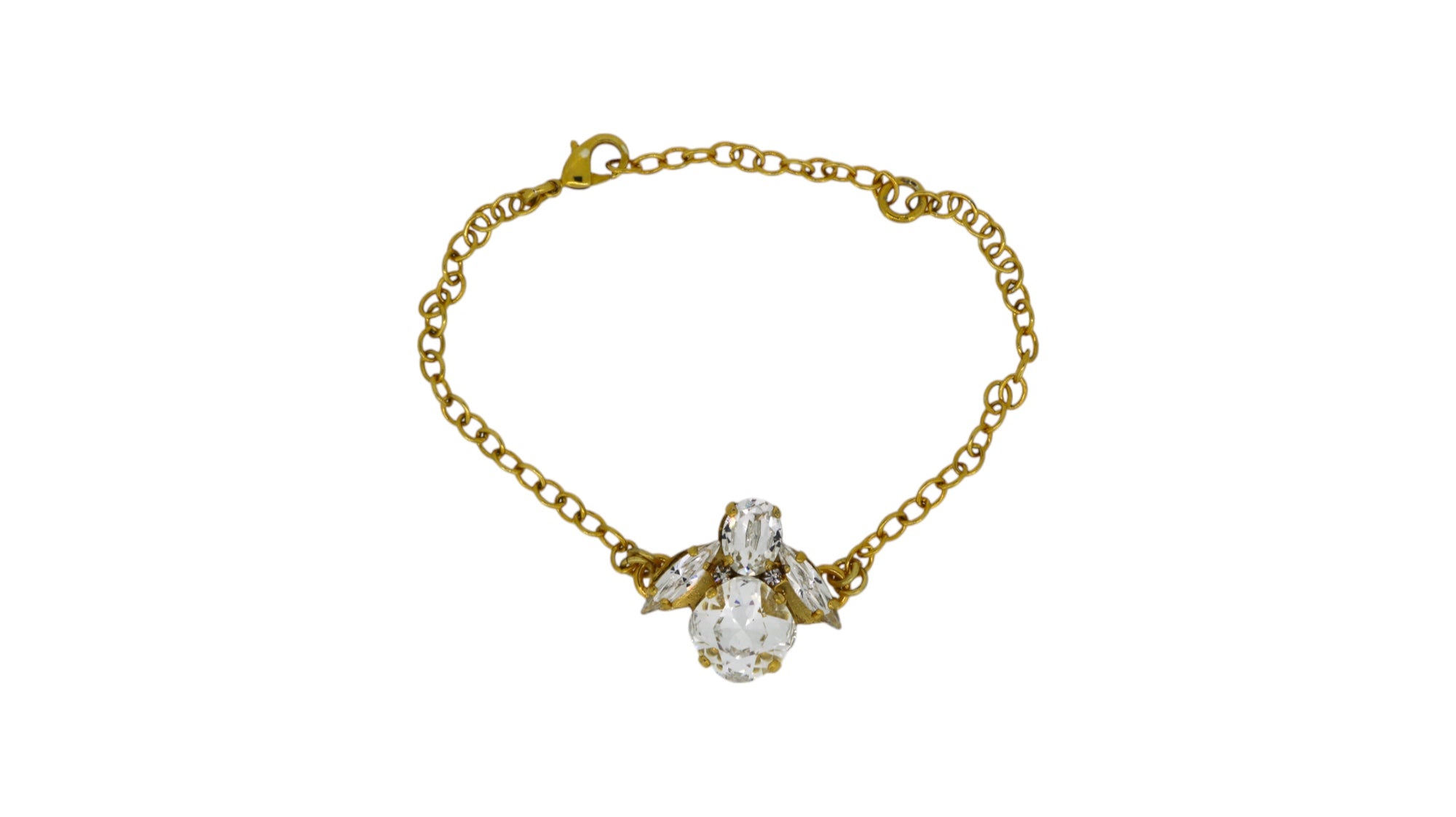 Esta pulsera, que cuenta con un deslumbrante cristal tallado en forma de cojín bañado en oro de 23 quilates, está hecha a mano en nuestro taller de Kensington. Perfecta para el día o la noche, la pulsera Bee es un elemento básico en cualquier guardarropa.