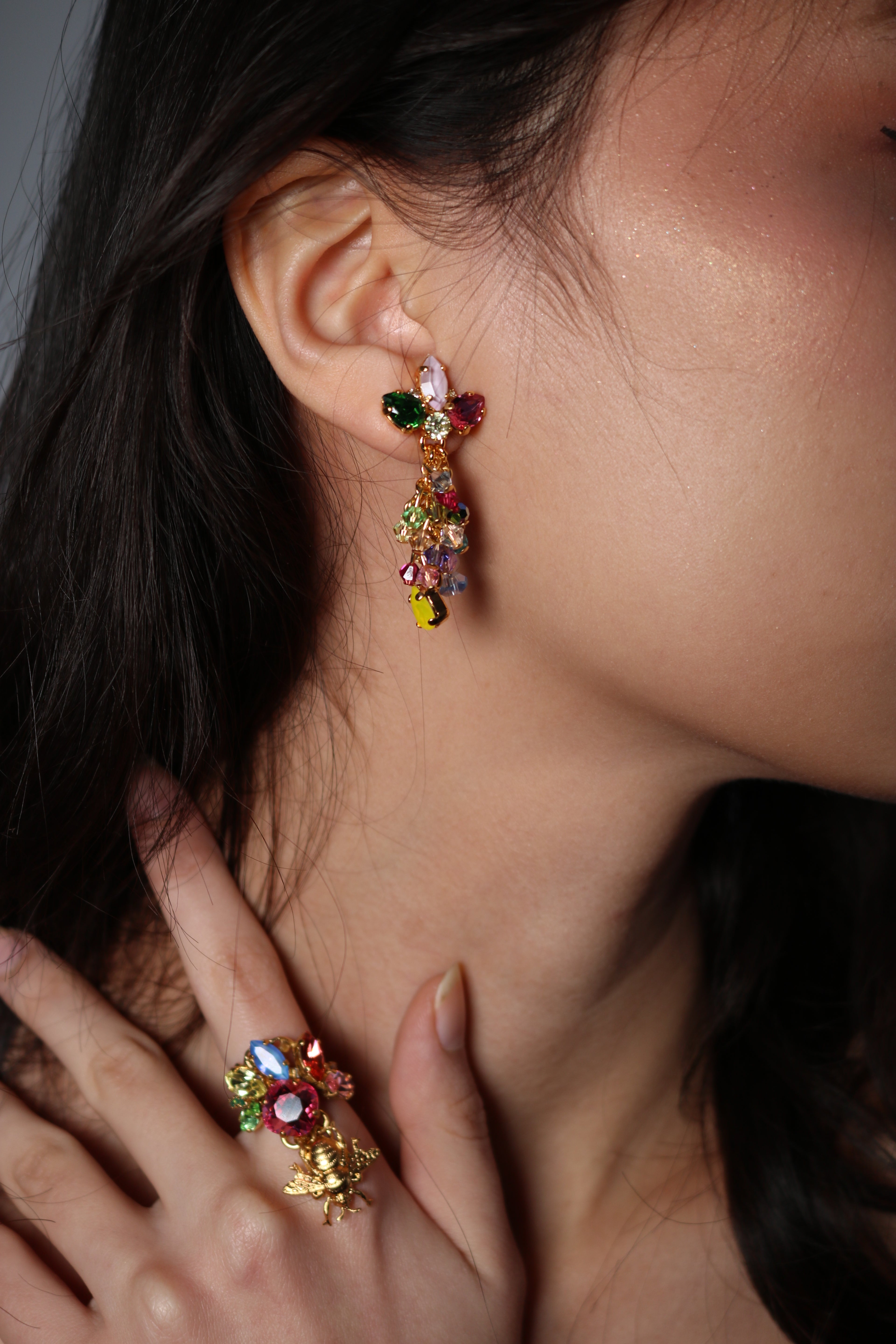 These delicate crystal cluster earrings feature Premium Austrian Crystals in deep tones, creating a luxurious and captivating effect. A fine cluster of crystal and semi-precious beads forms the delicate base, adding texture and depth.