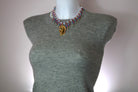 Flecos de piedras que gotean en cuentas azules y rosas coronados por nuestro dije Chardonneigh adornado con joyas bañado en oro de 23 k.