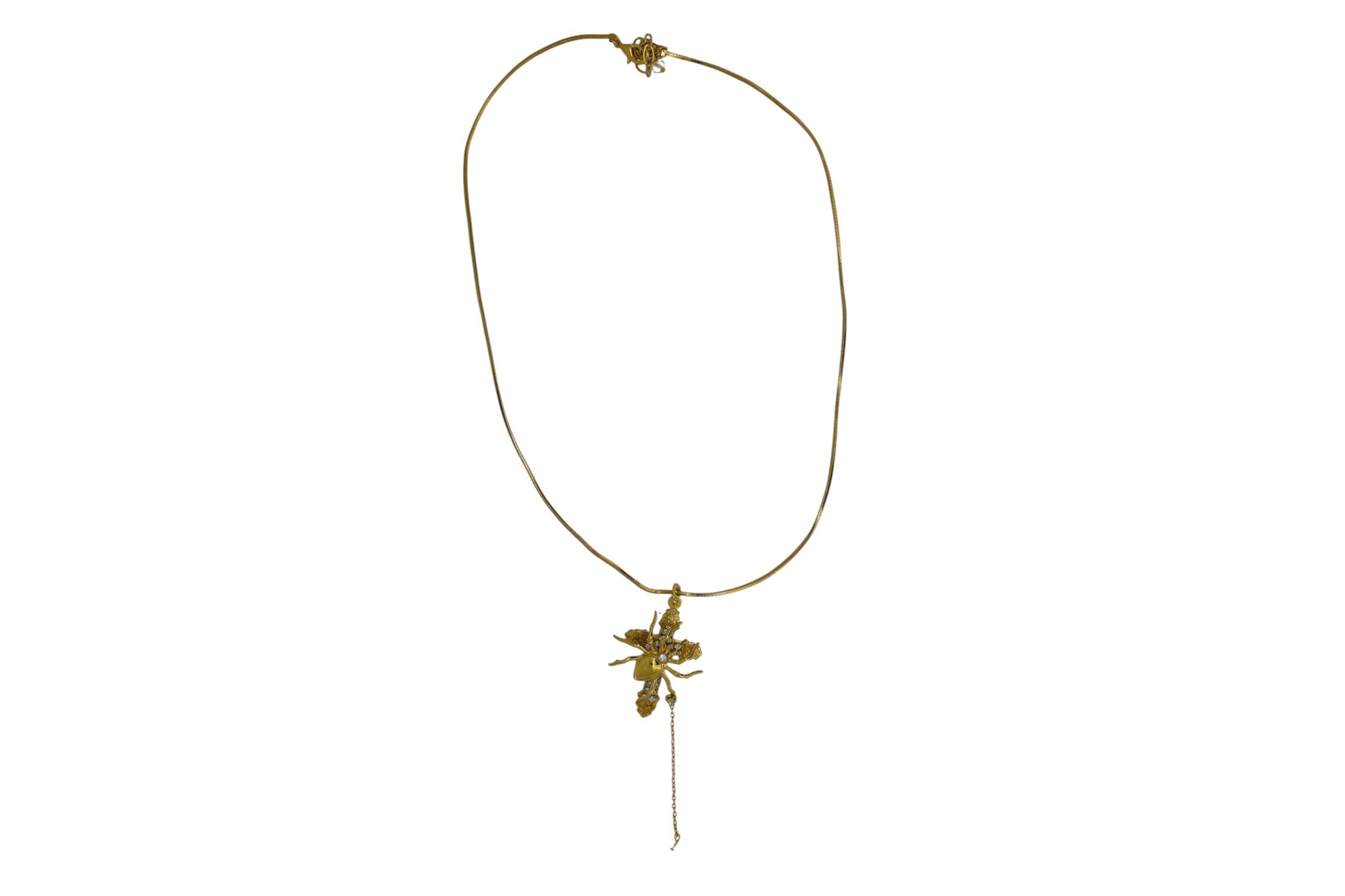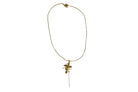 Delicate 23k Gold plated chain and cross pendant with crawling spider motif and dripping chain.