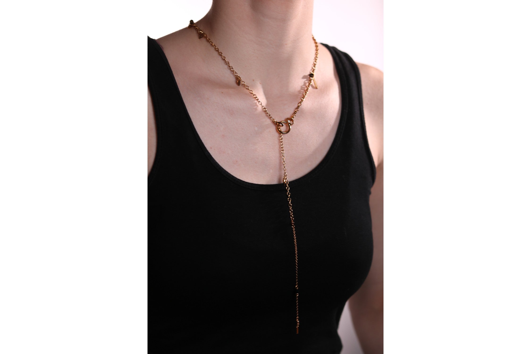 Designed in collaboration with Karina Bond, this delicate and versatile lariat necklace features minute spikes and is accented in delicate crystal beads.