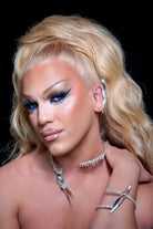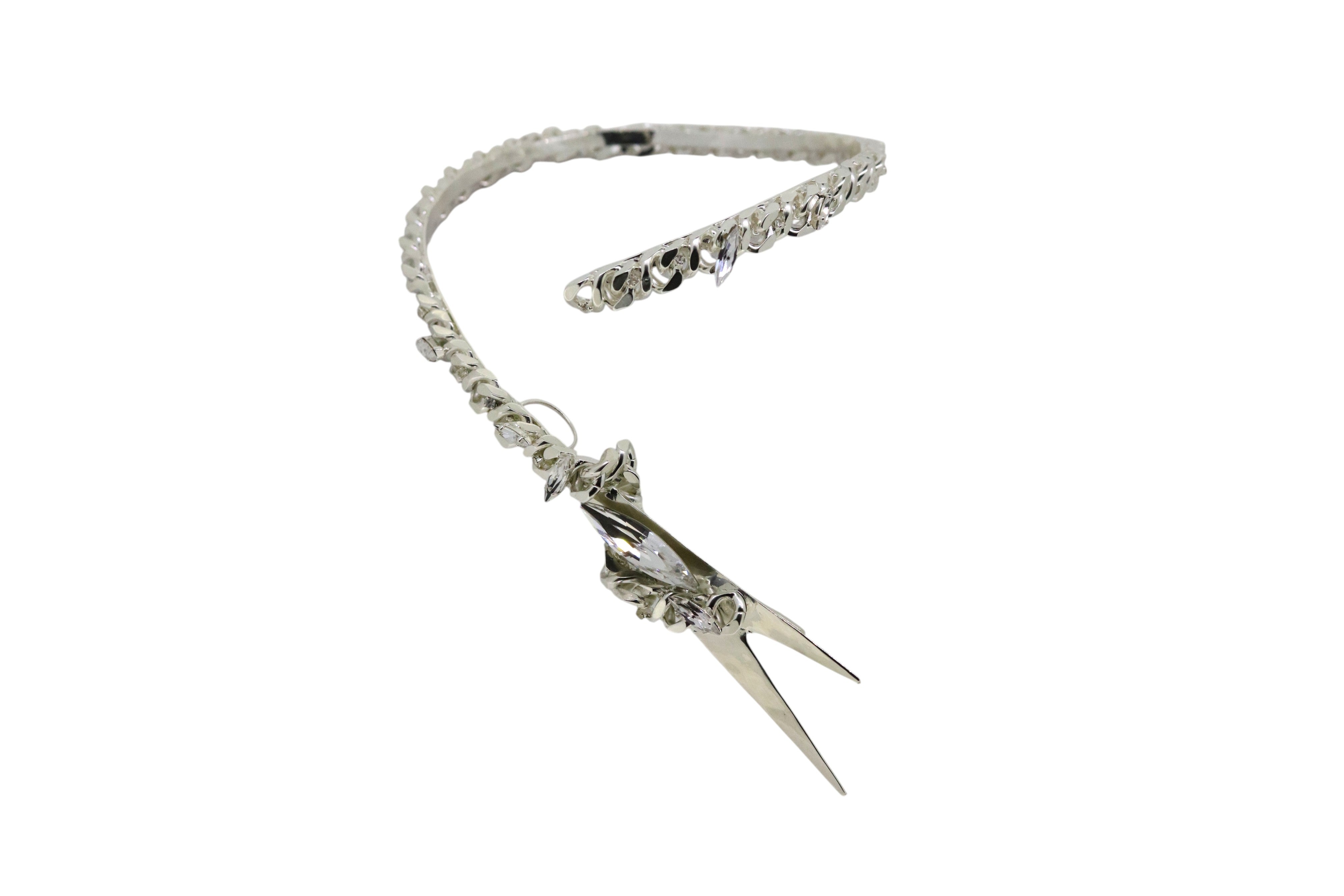 Designed in collaboration with Alexis Saint Pete, this bold neckpiece features crystal embellished chain that snakes around the neck, terminating in a forked motif.