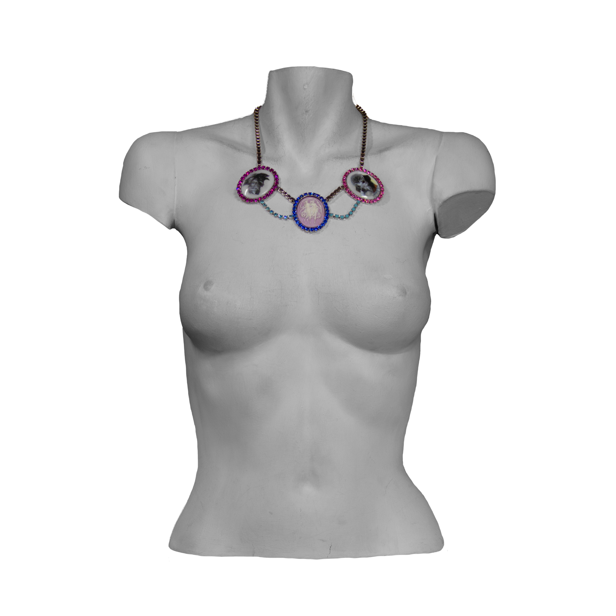 Our jewellery utilises 23k Gold, Platinum, and Sterling Silver plating over a nickel-free base. We use only ethically sourced materials and crystals and faux pearls of the highest quality.