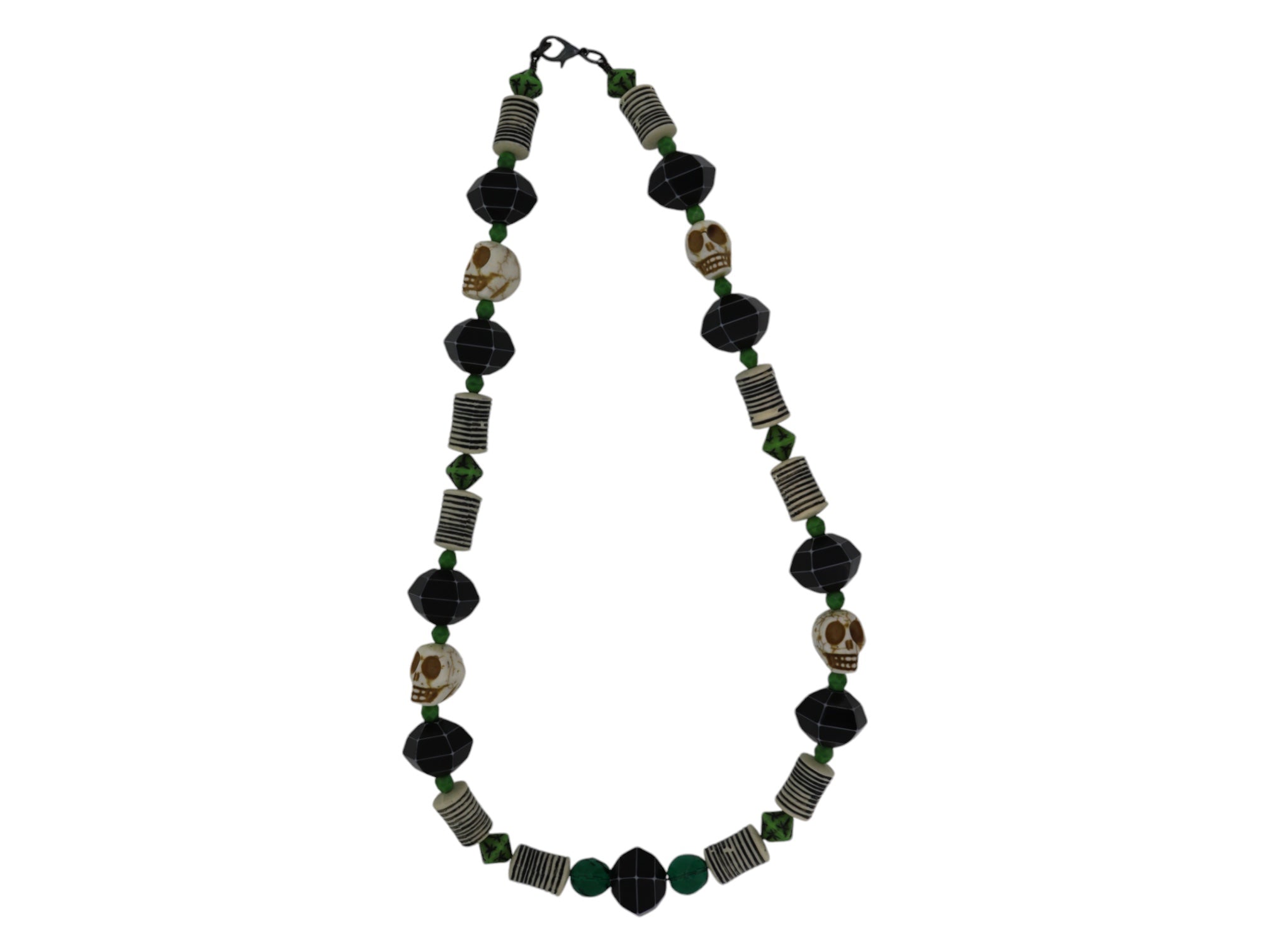 Cada pieza está elaborada con cuentas raras y antiguas extraídas directamente de las bóvedas de VICKISARGE, lo que ofrece un toque único al glamour de Halloween. No te pierdas esta oportunidad de tener un accesorio de una belleza cautivadora que combina la alta costura con una elegancia inquietante.