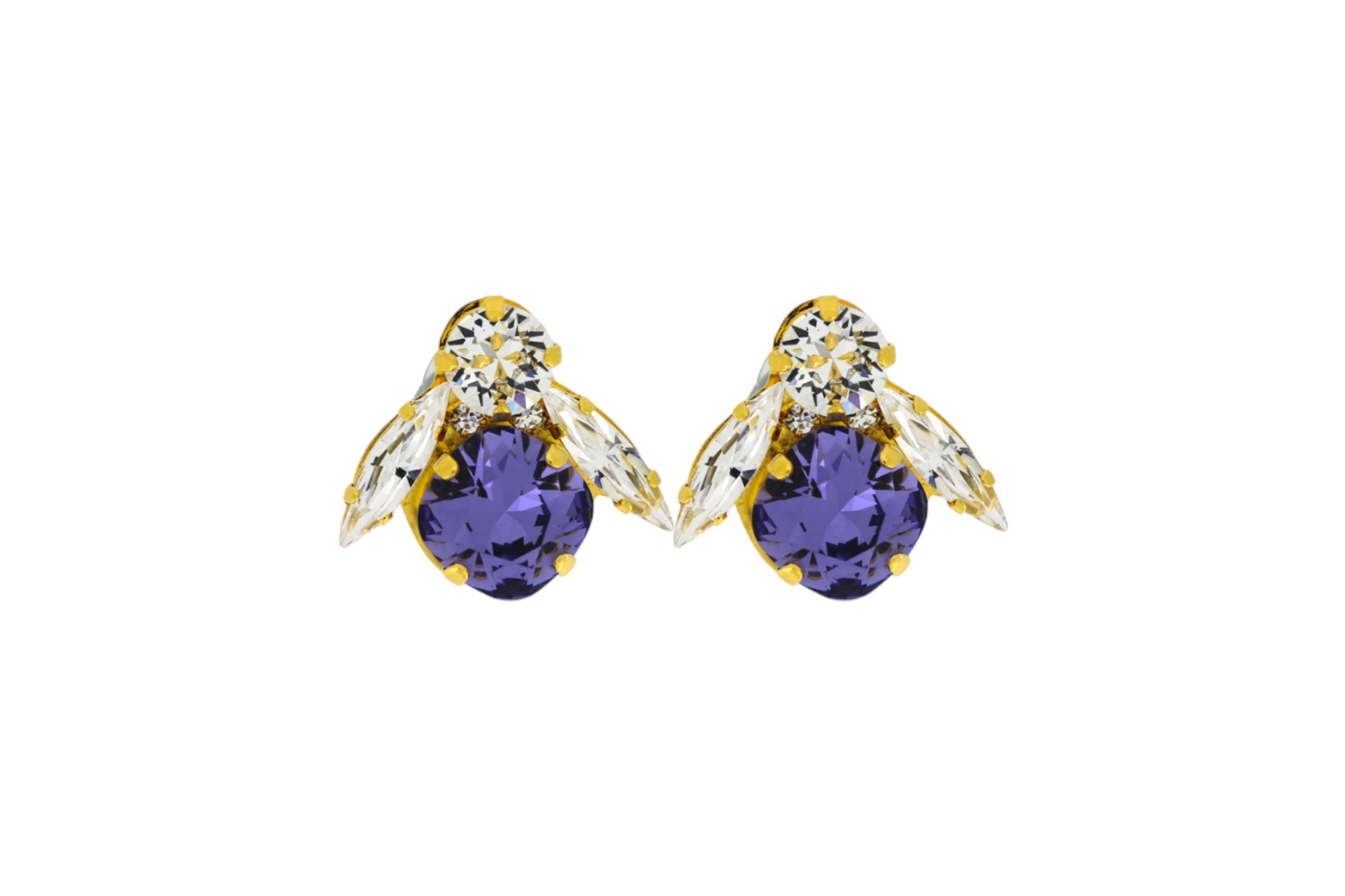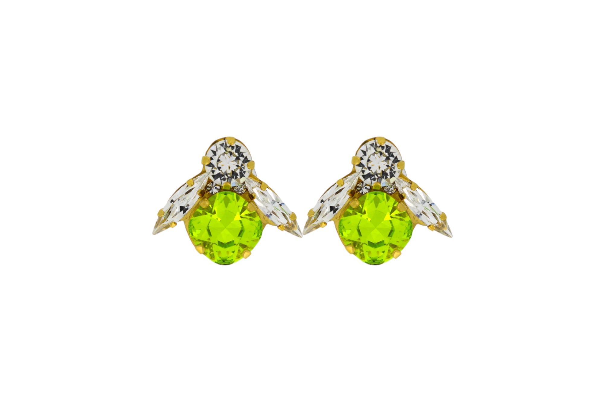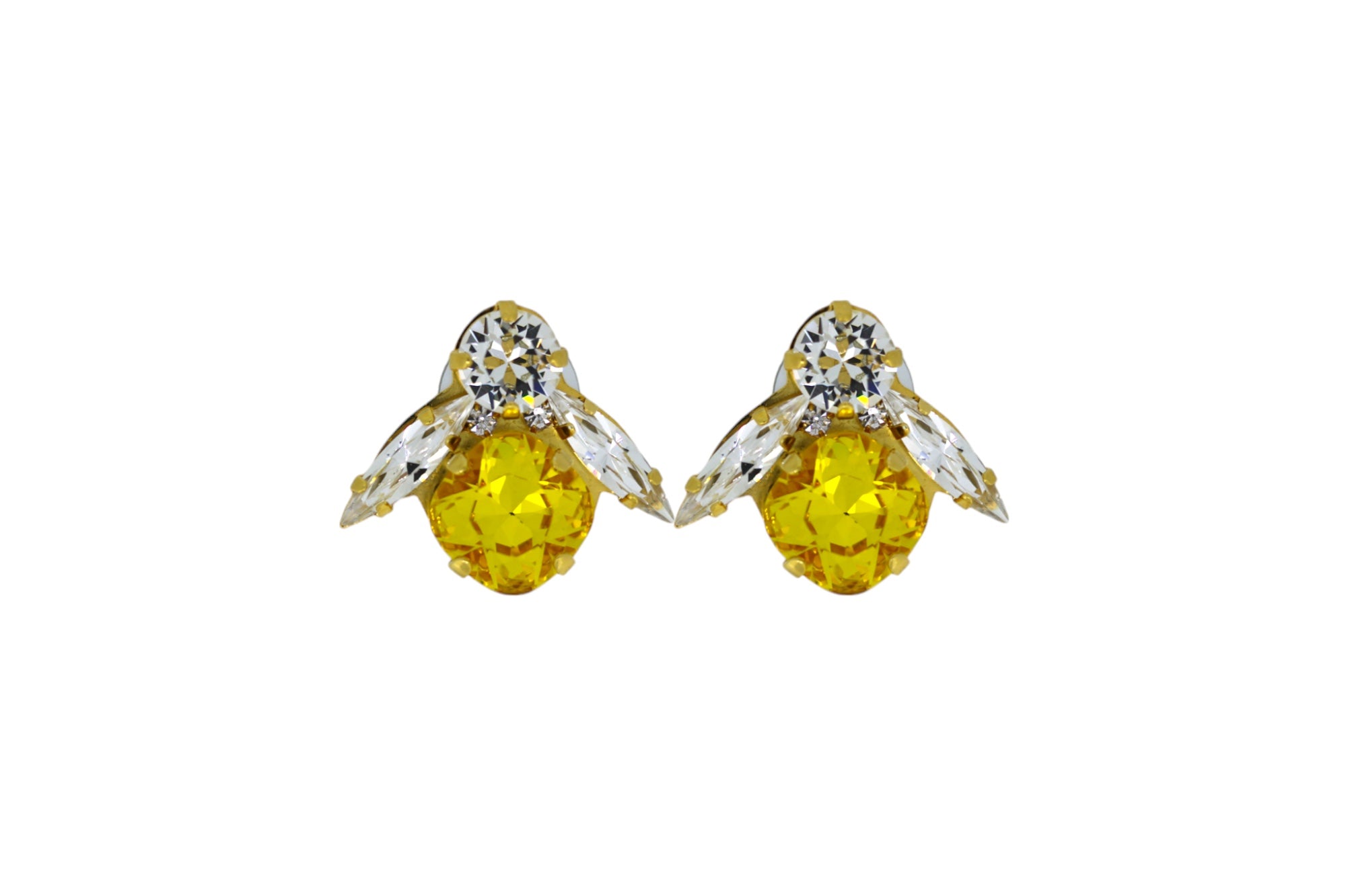 Con deslumbrantes cristales tallados en forma de cojín y alas brillantes, la abeja es un elemento básico de la casa reinventado para un nuevo público. Estos aretes están hechos a mano en nuestro taller de Kensington.