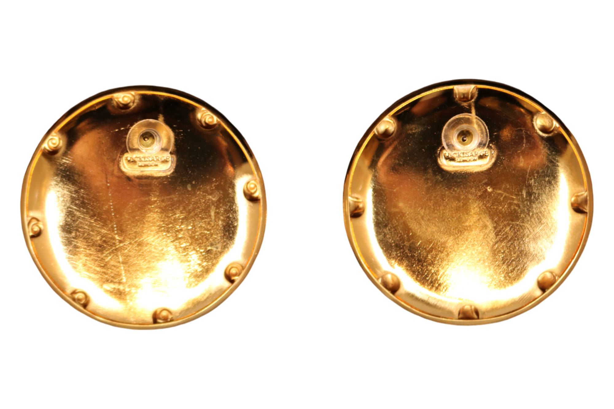 - Materiales: baño de oro de 23 k, latón sin níquel y postes de acero quirúrgico.