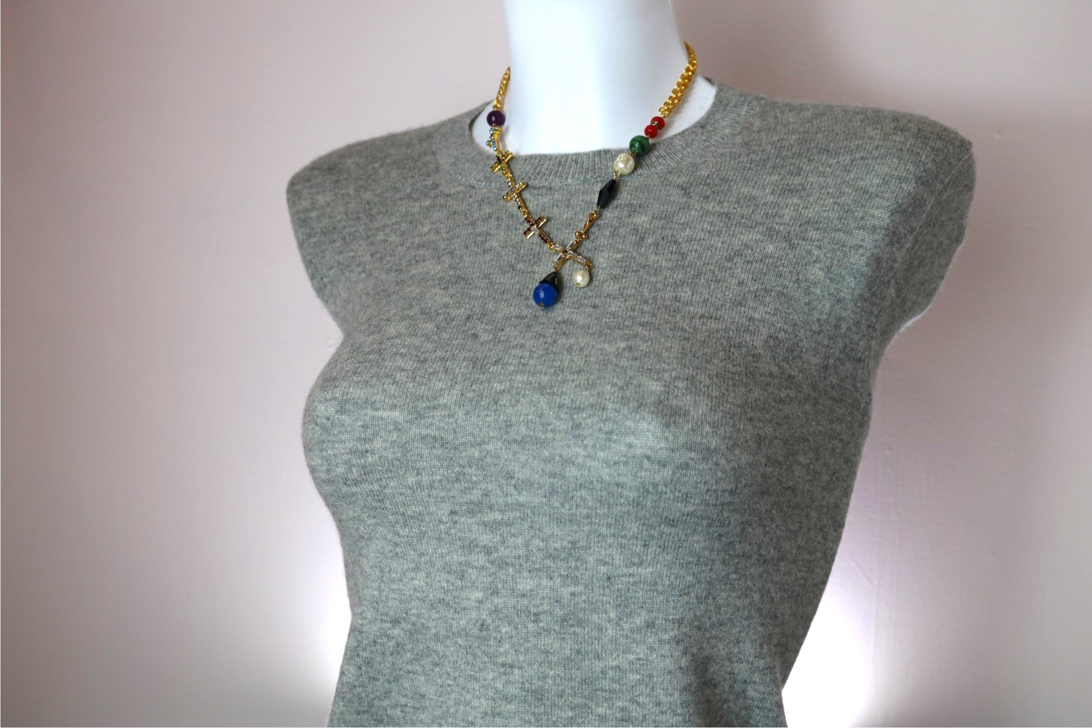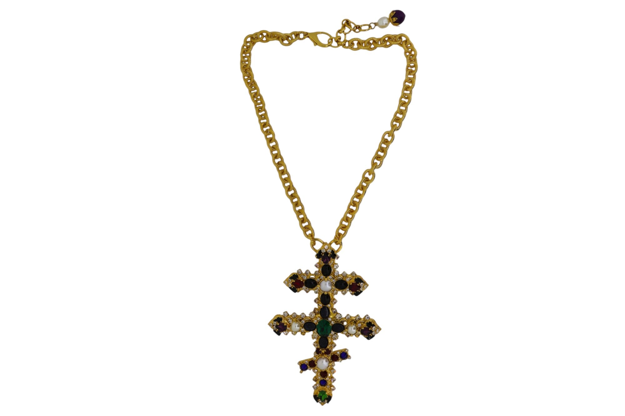 Tonos joya intensos, cruces intrincadas y diseños en capas ocupan un lugar central, evocando una sensación de elegancia regia con un toque moderno.