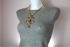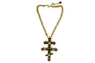 Un llamativo accesorio de moda que presenta una gran cruz de estilo (no)ortodoxo adornada con cristales brillantes y bañada en oro de 23 quilates. Este llamativo collar combina teatralidad con estilo moderno, perfecto para hacer una declaración de estilo cautivadora.