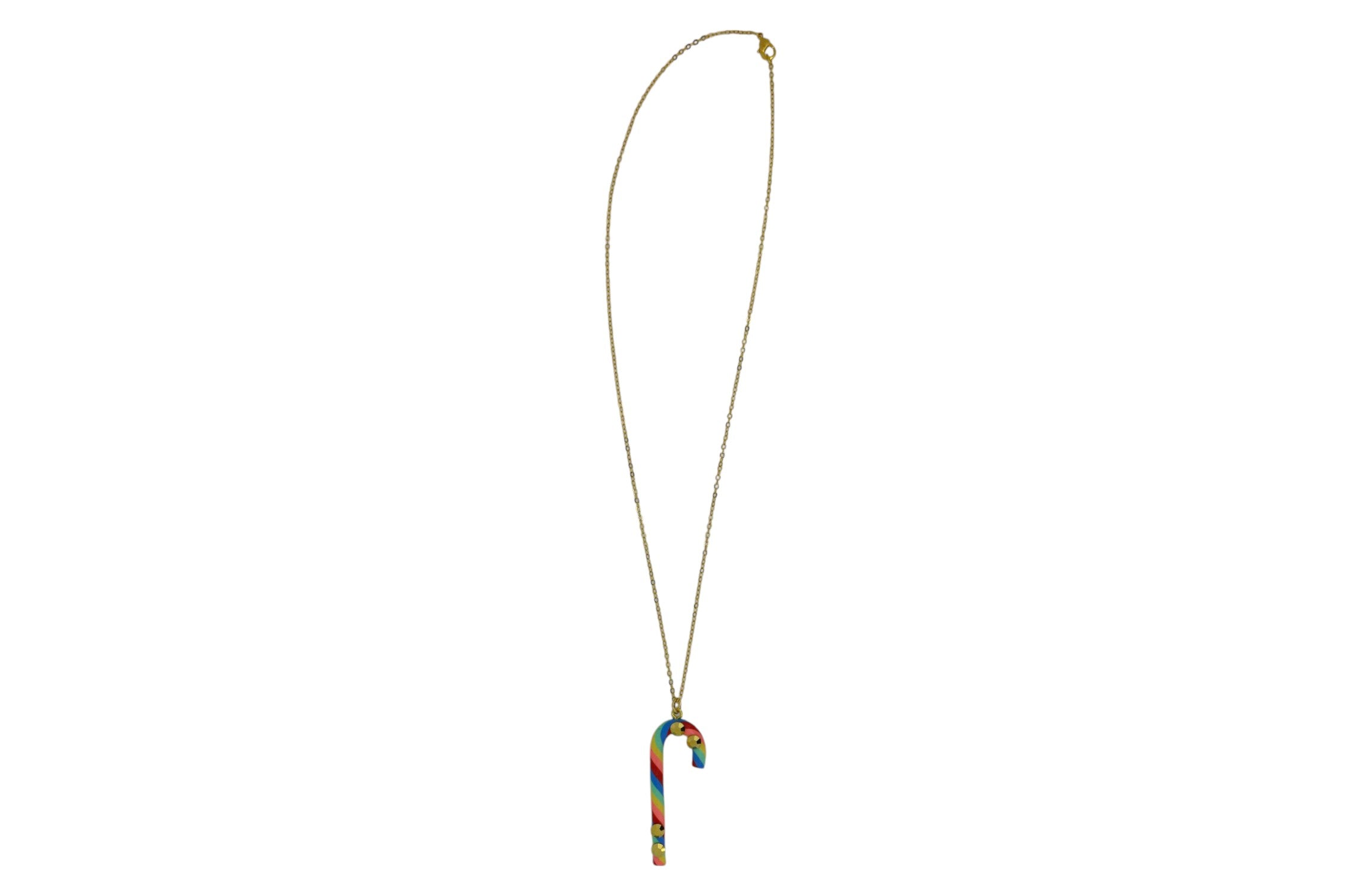 This delightful Necklace combines festive charm with luxurious elegance, crafted in radiant 23k Gold plating. Premium Austrian Crystals support a whimsical Candy Cane drop that trembles with every movement.