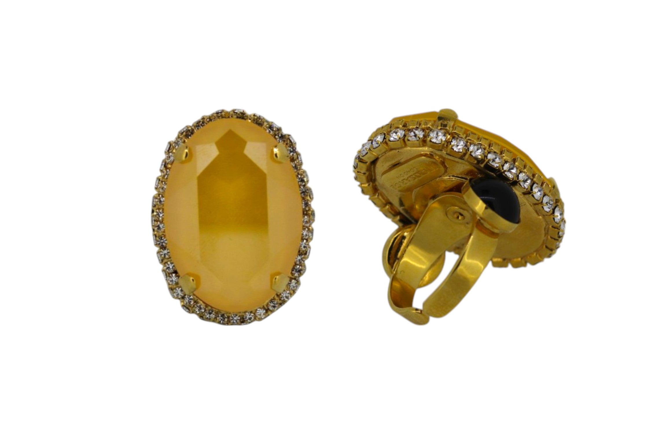 Bold and optimistic yellow crystal cocktail ring with clear and black accents