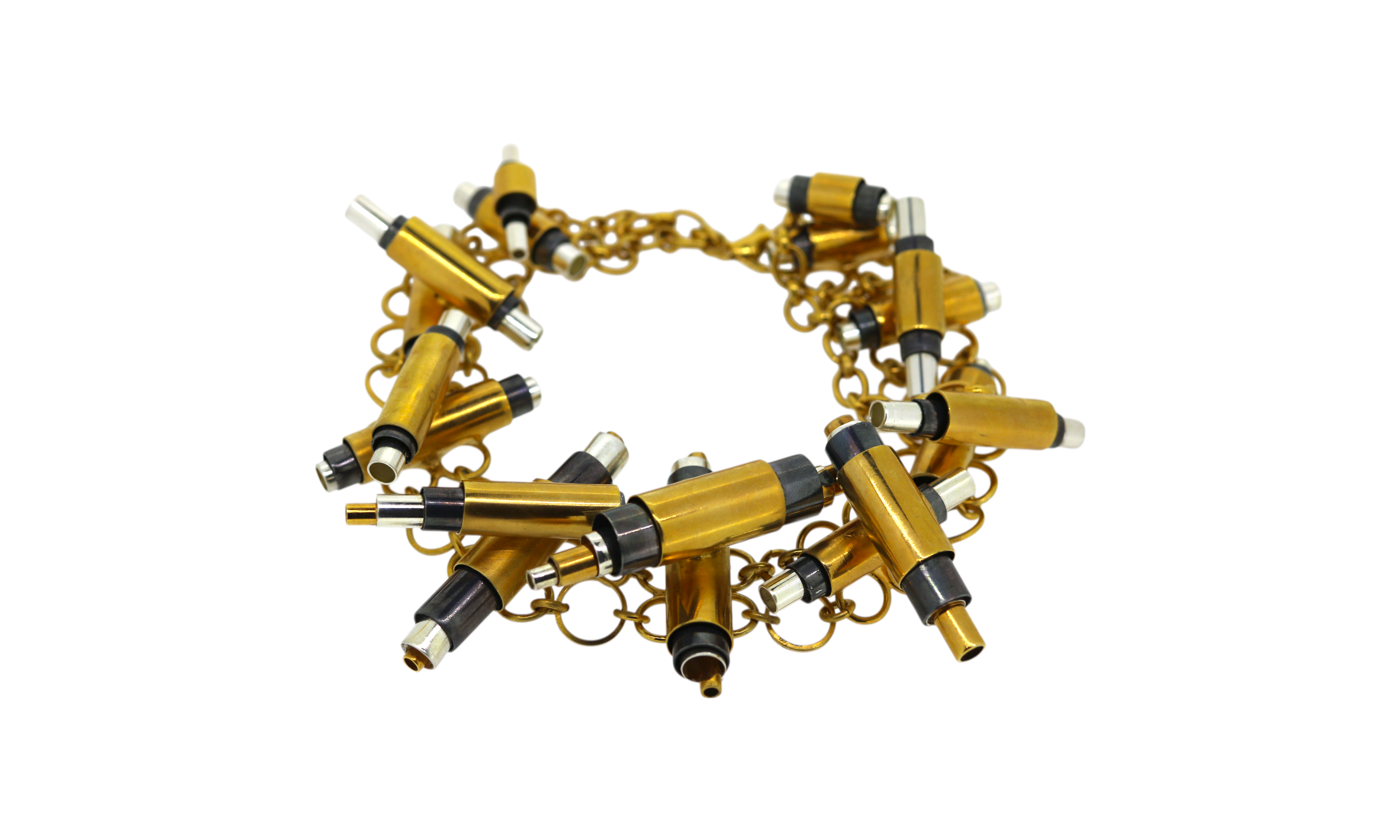 The Industrial Collar is a striking reimagining of a signature archival piece: Combining gold plating, silver plating and oxidised silver tones into sculptural forms, it makes an unmistakably bold statement.