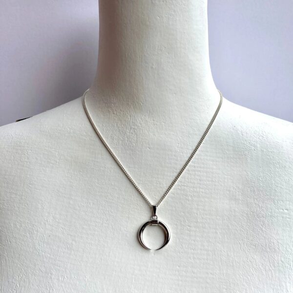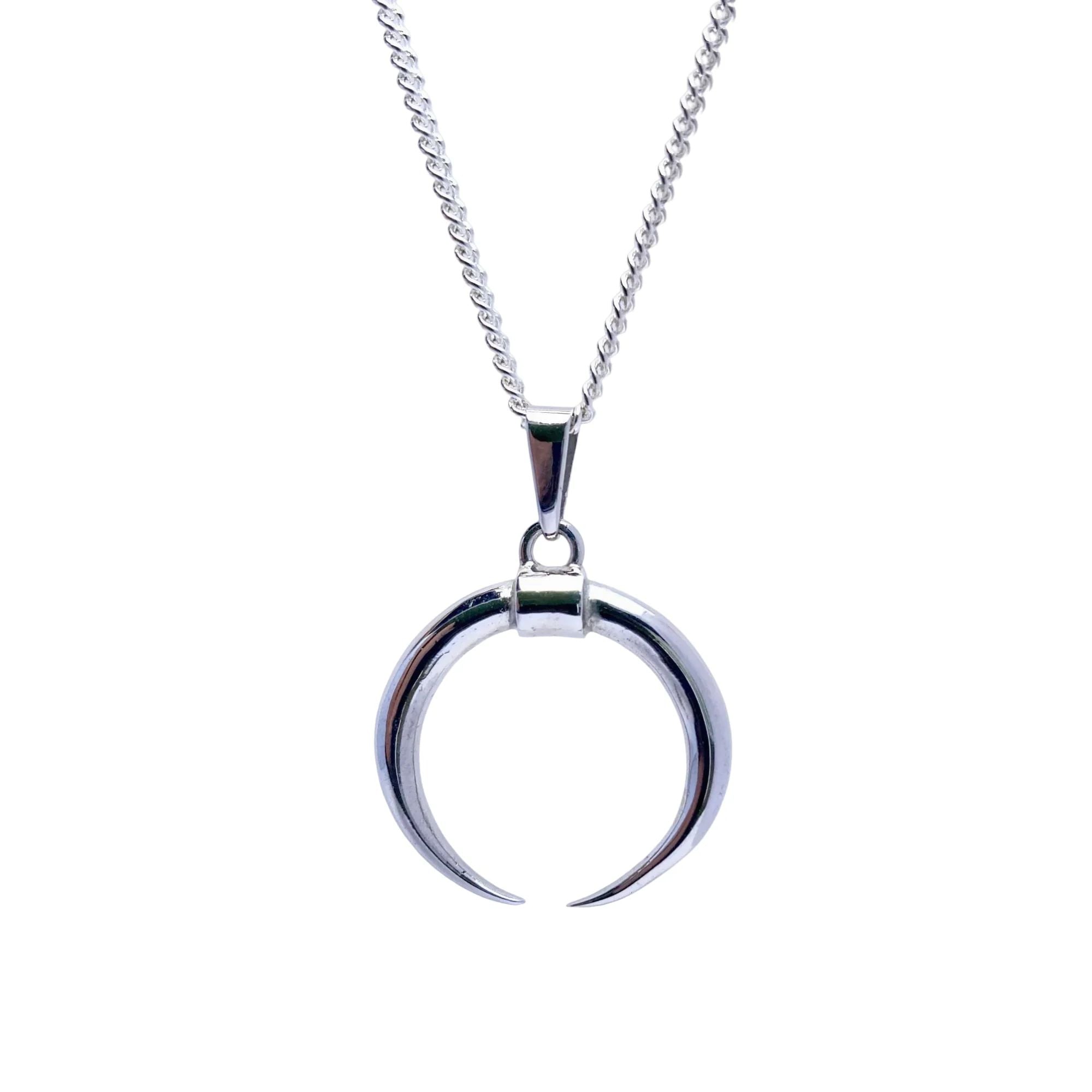 Handmade ‘Tusk’ Pendant with 50 cm Sterling Silver Curb Chain with a white pearl as charm on the tail.