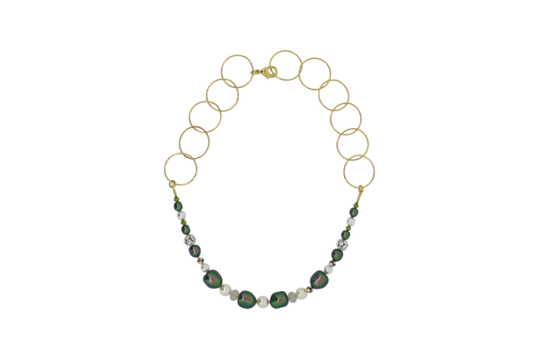 Small Green Pearl and Chaton Necklace