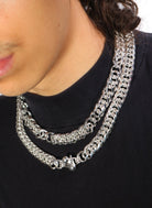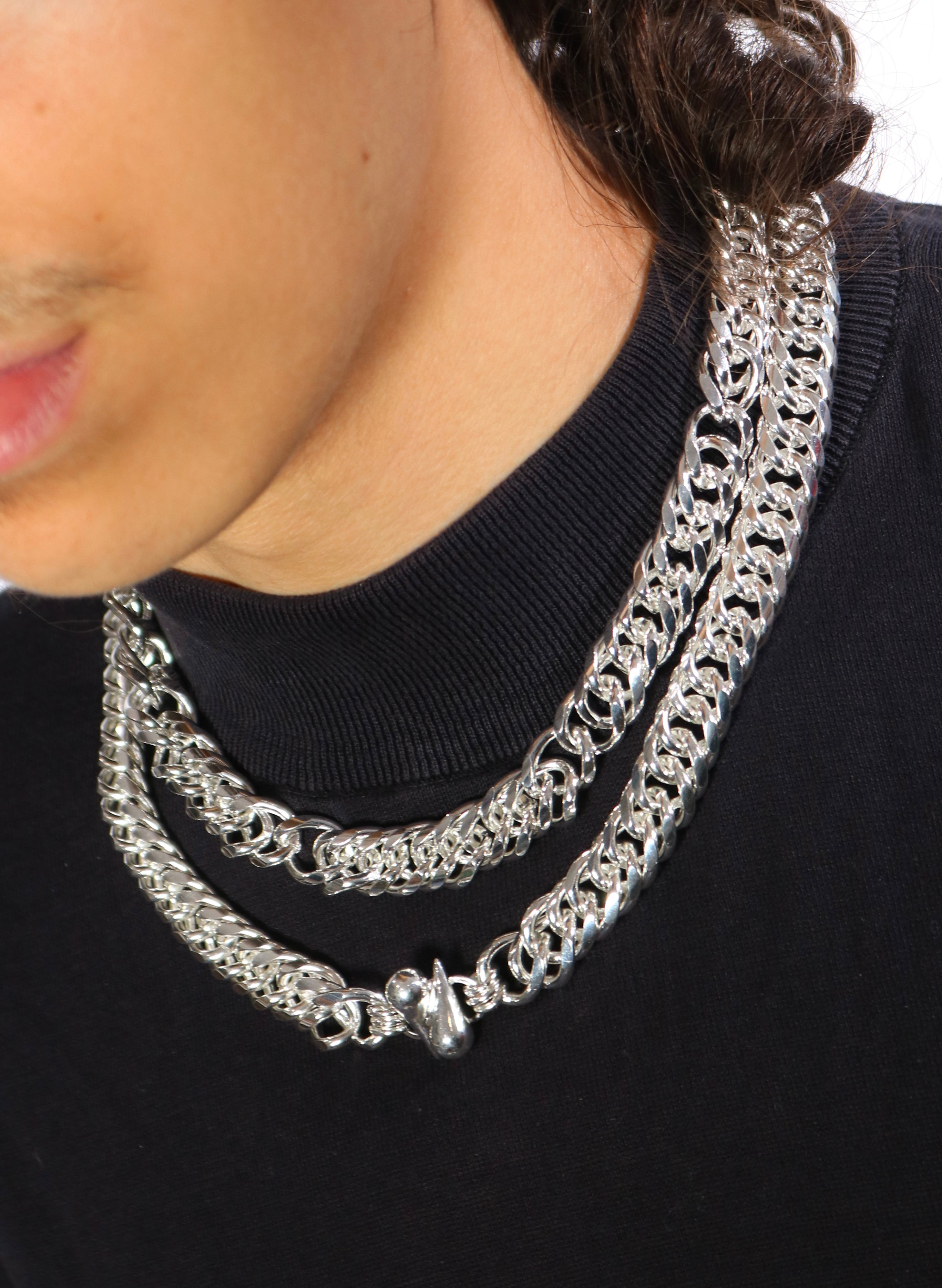 Two opposing droplets encased in Sterling Silver sit on the front of this classic chain necklace. Ideal for every-day, on its own or as part of a stack.