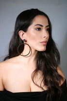 The Large Black Hoop Earrings in Gold (Clip)